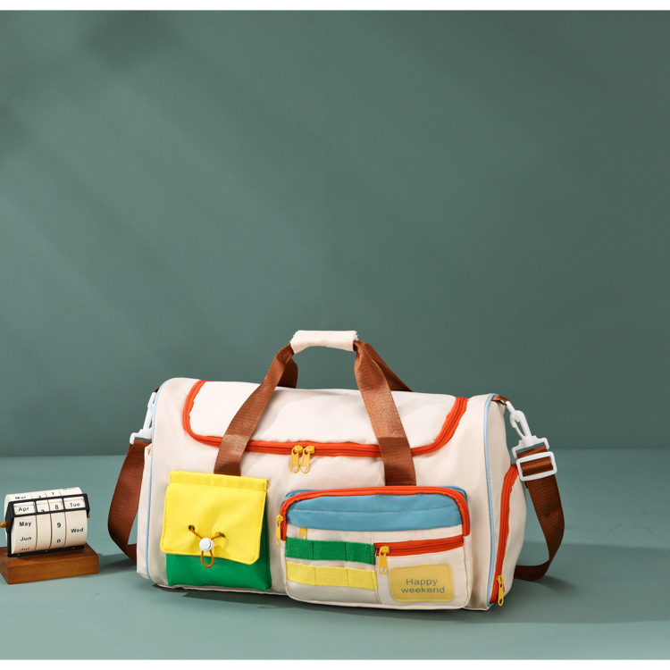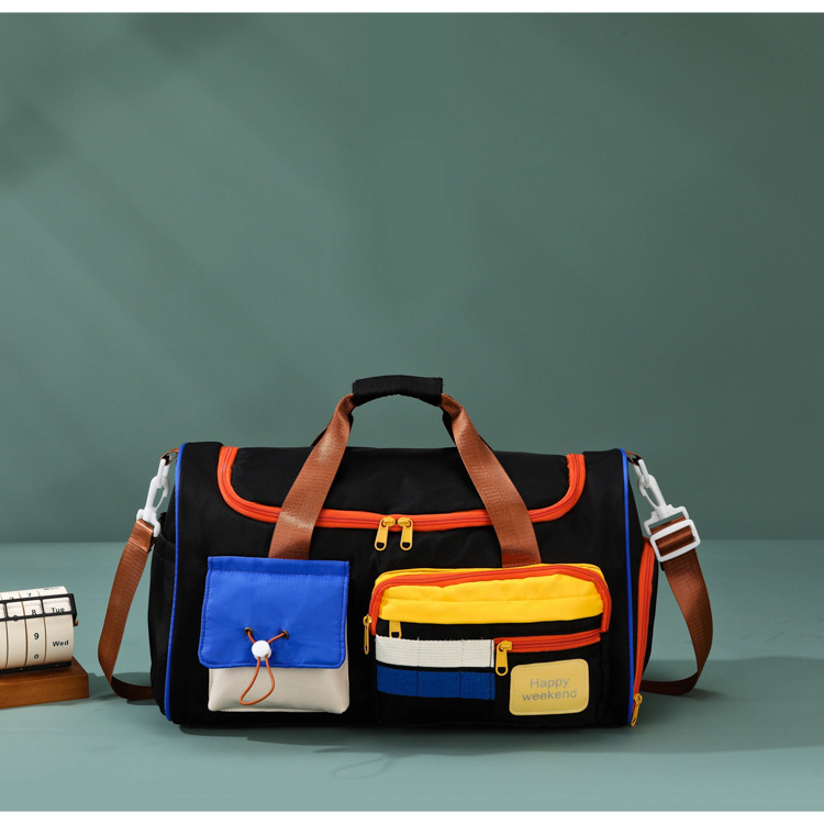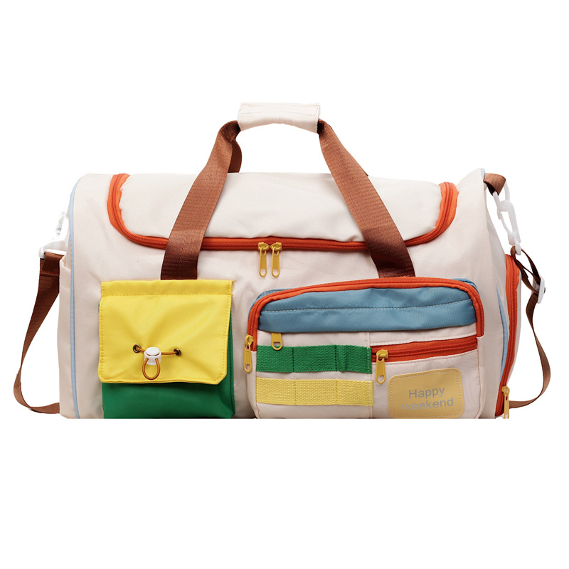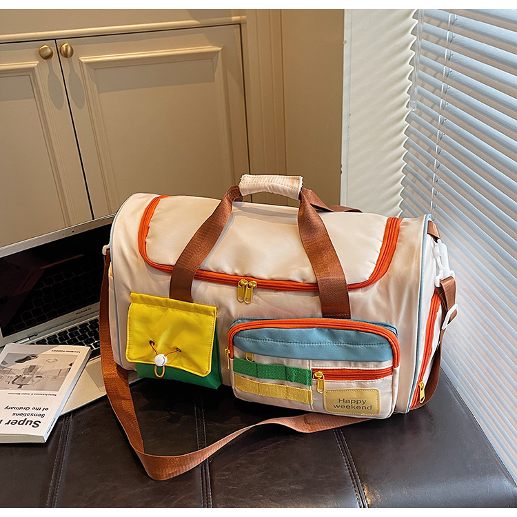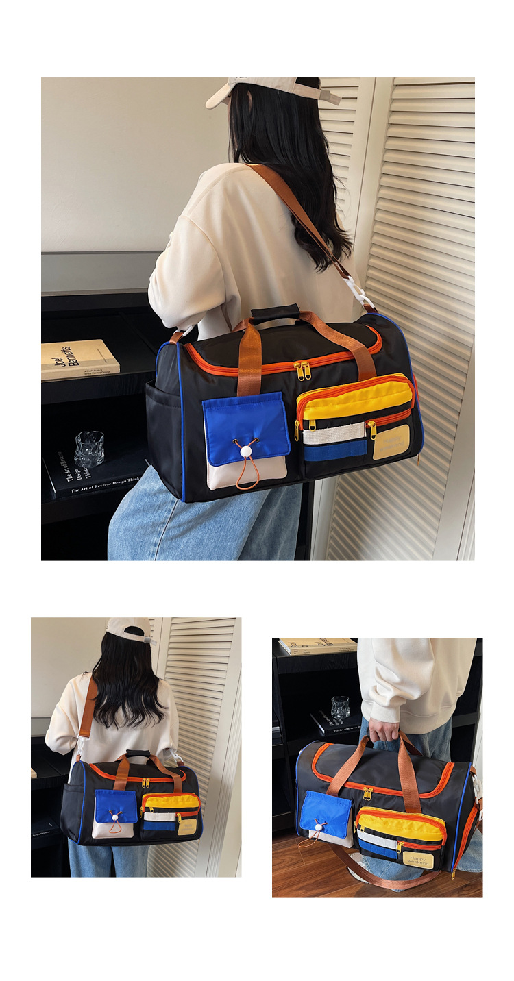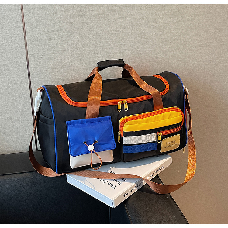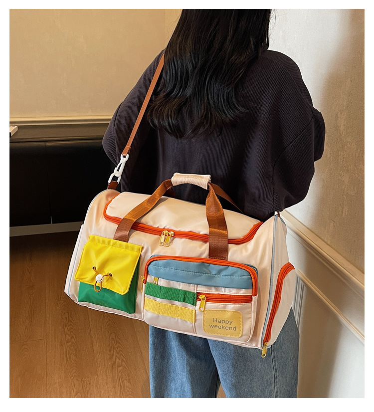男女时尚撞色大容量旅行包多巴胺运动健身包游泳瑜伽包登机行李包