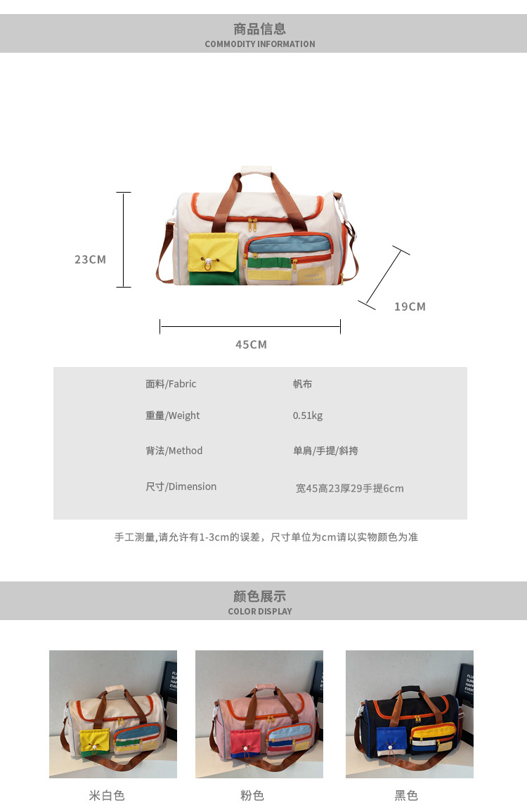 男女时尚撞色大容量旅行包多巴胺运动健身包游泳瑜伽包登机行李包 投诉