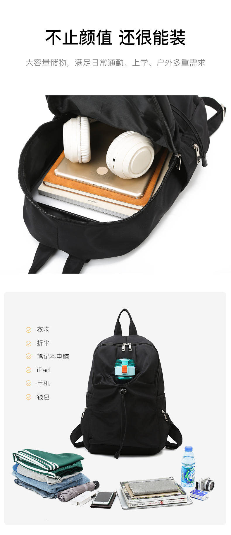 批发双肩包2025冬季新款前置水杯袋学生书包尼龙布女包旅行背包 投诉