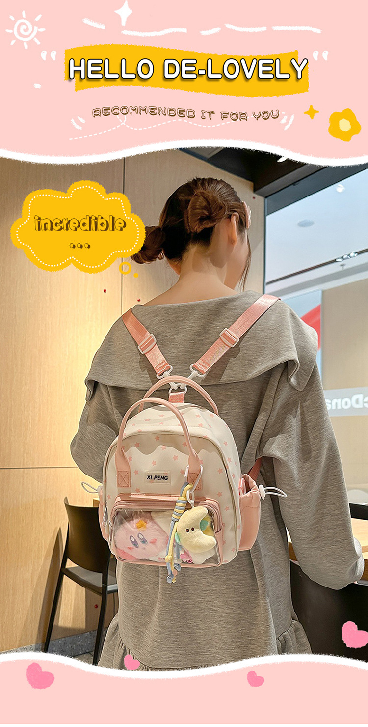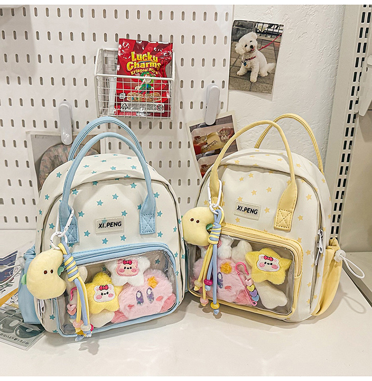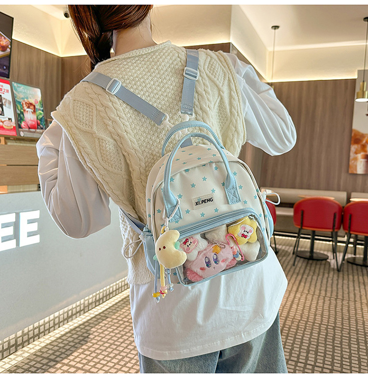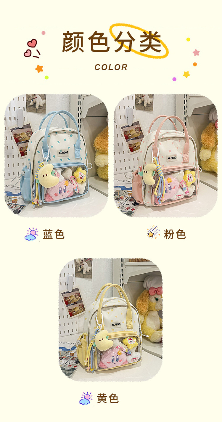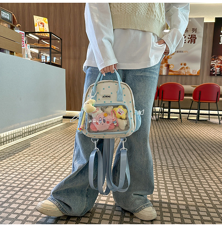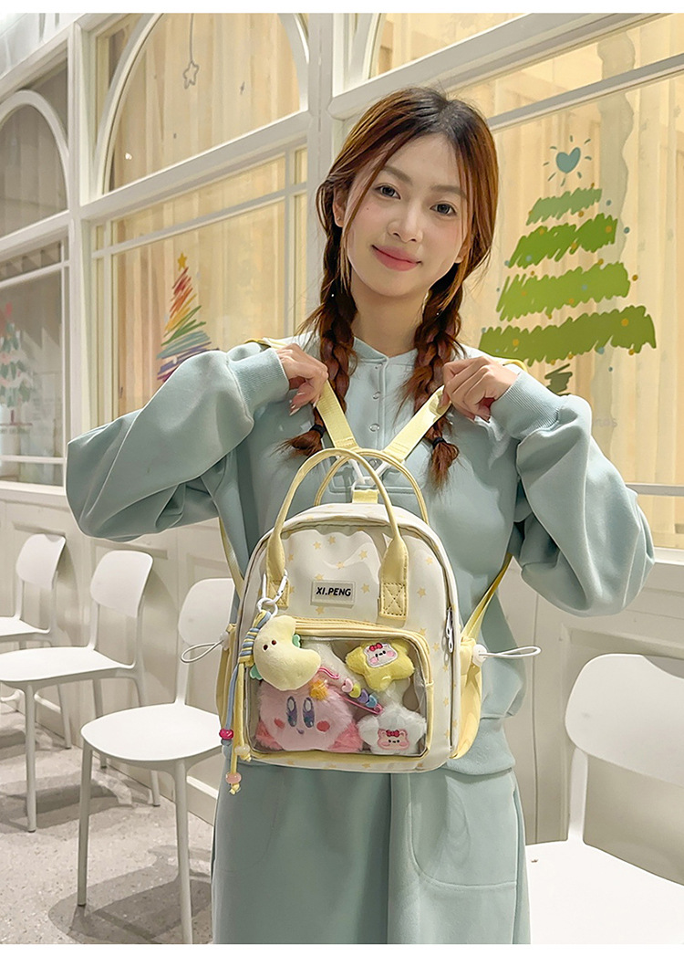 可爱星星双肩包女透明痛包出游轻便大学生二次元单肩背包可爱包包