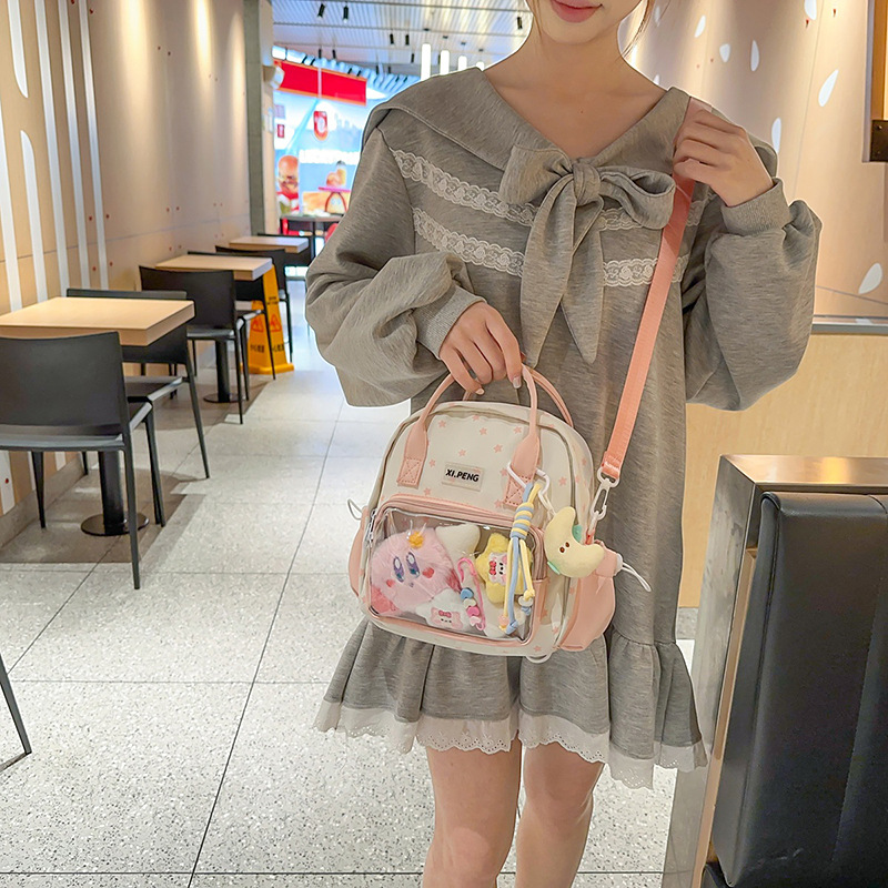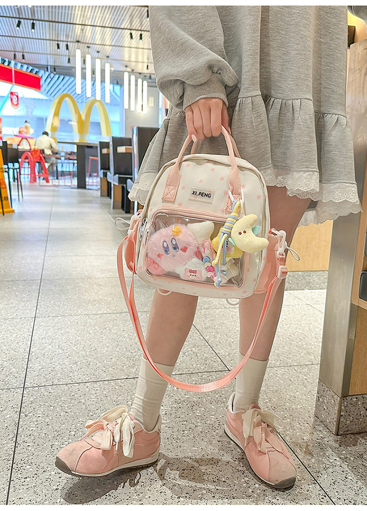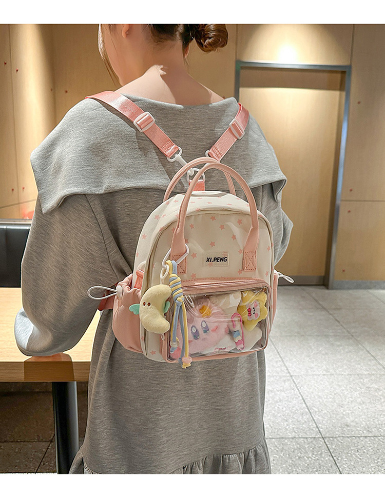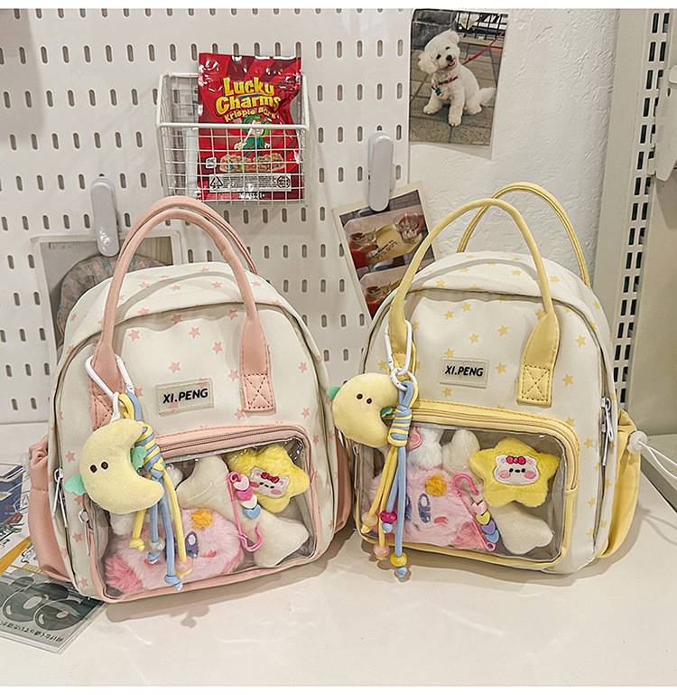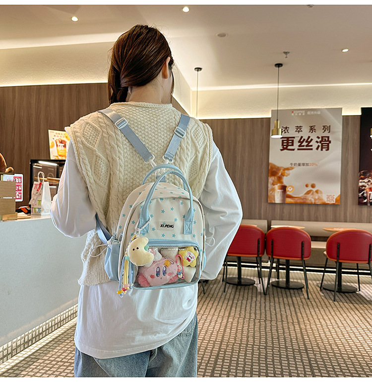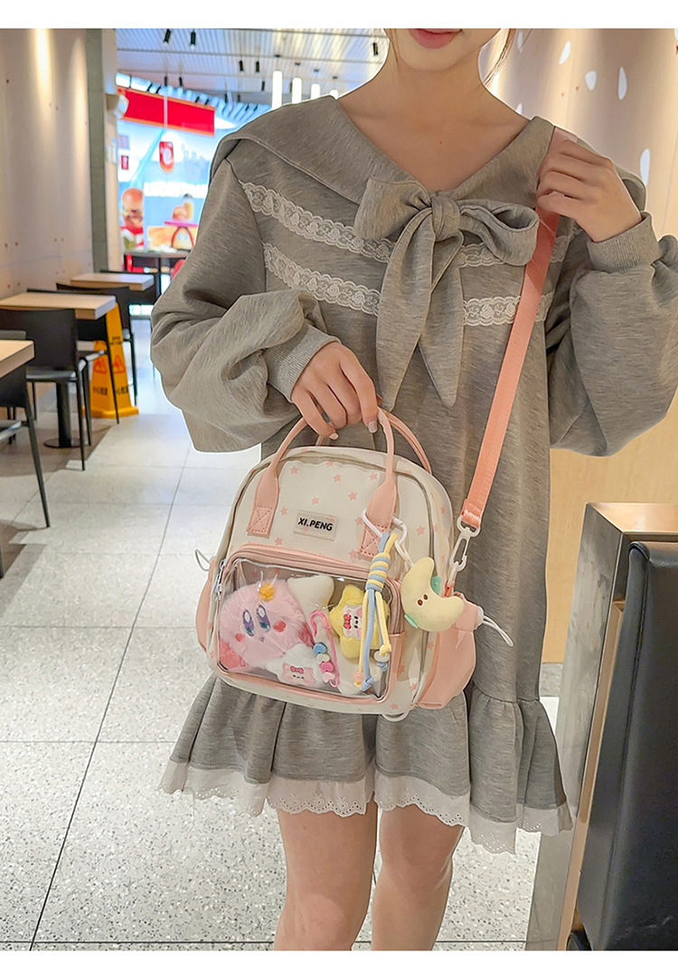 可爱星星双肩包女透明痛包出游轻便大学生二次元单肩背包可爱包包