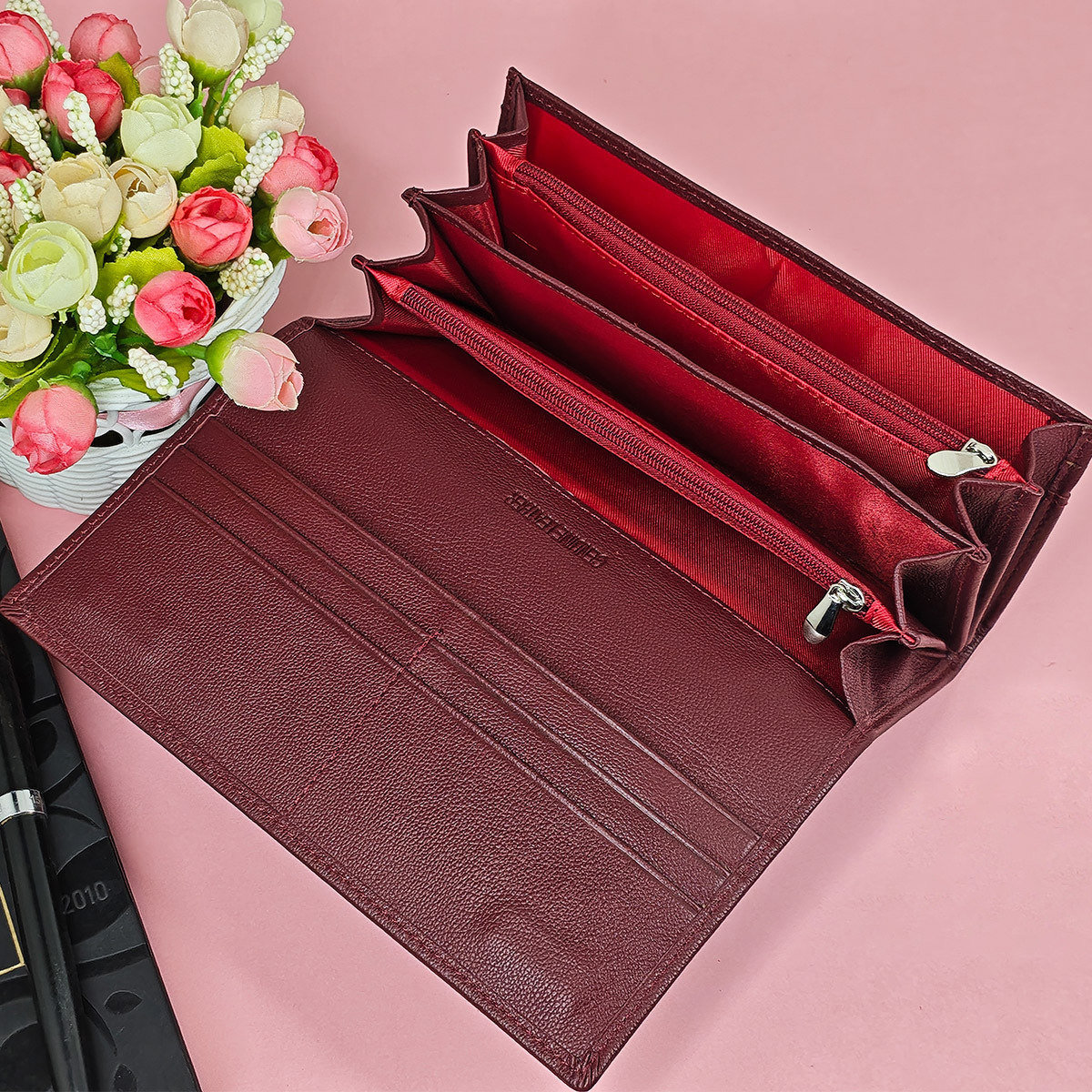 头层牛皮磁扣长款钱包 OZON WB热卖钱夹 女士钱包
