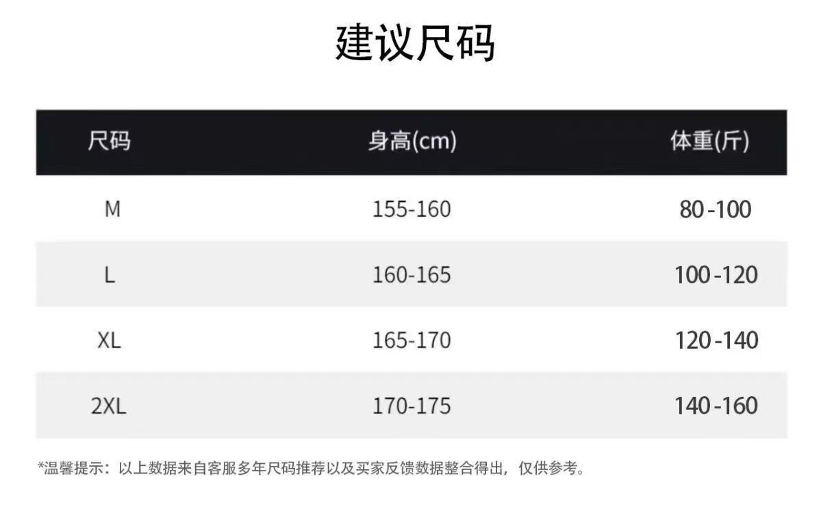 | 2XL号推荐【140-165】 | ¥2500 | 9995套可售 |