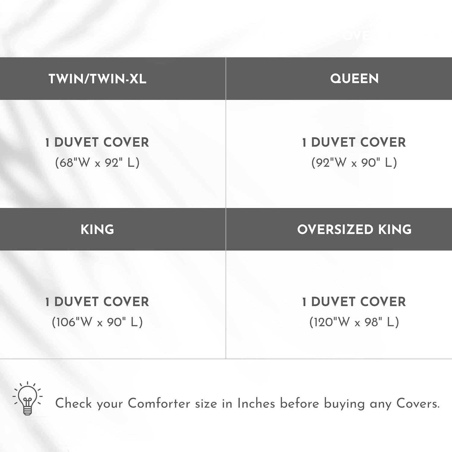 US King: 一个被套228x264cm, 两个枕套 50x90cm