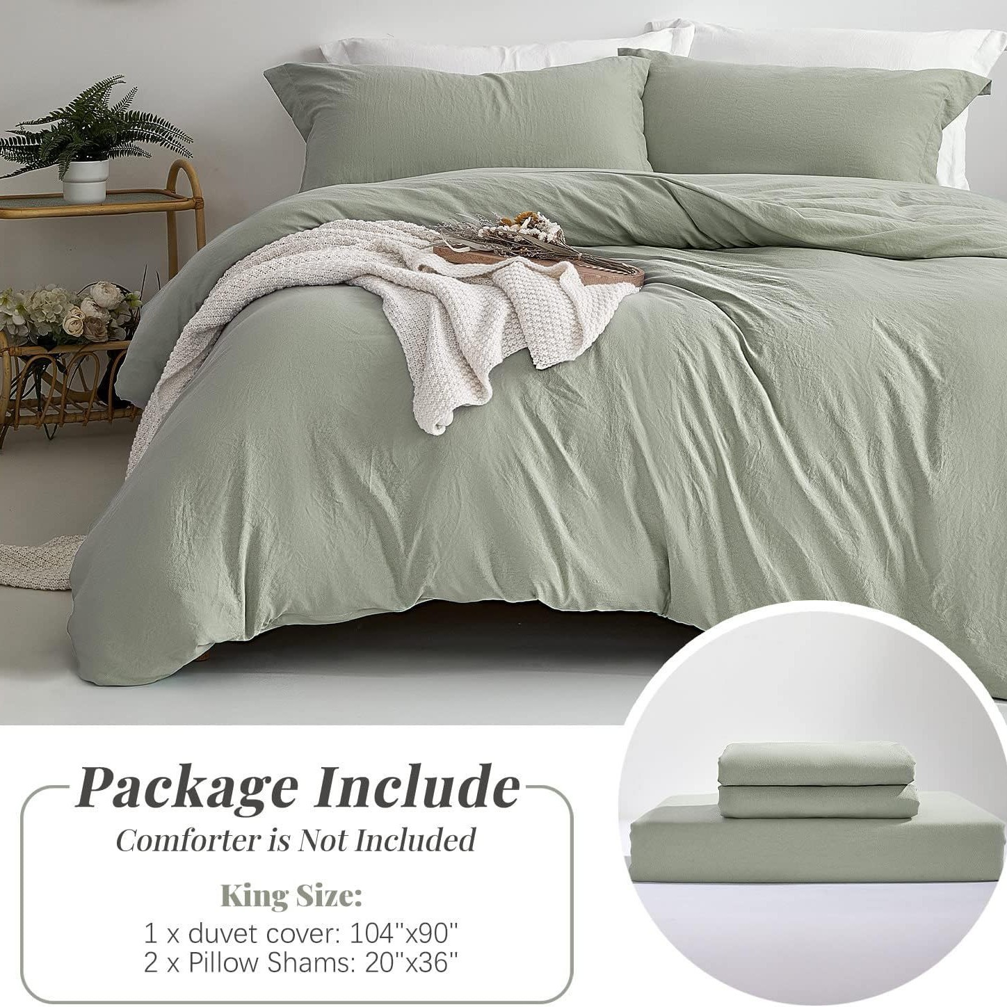 US King: 一个被套228x264cm, 两个枕套 50x90cm