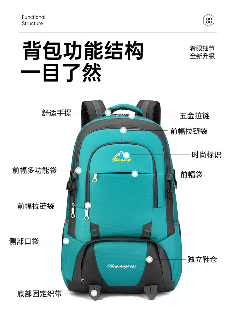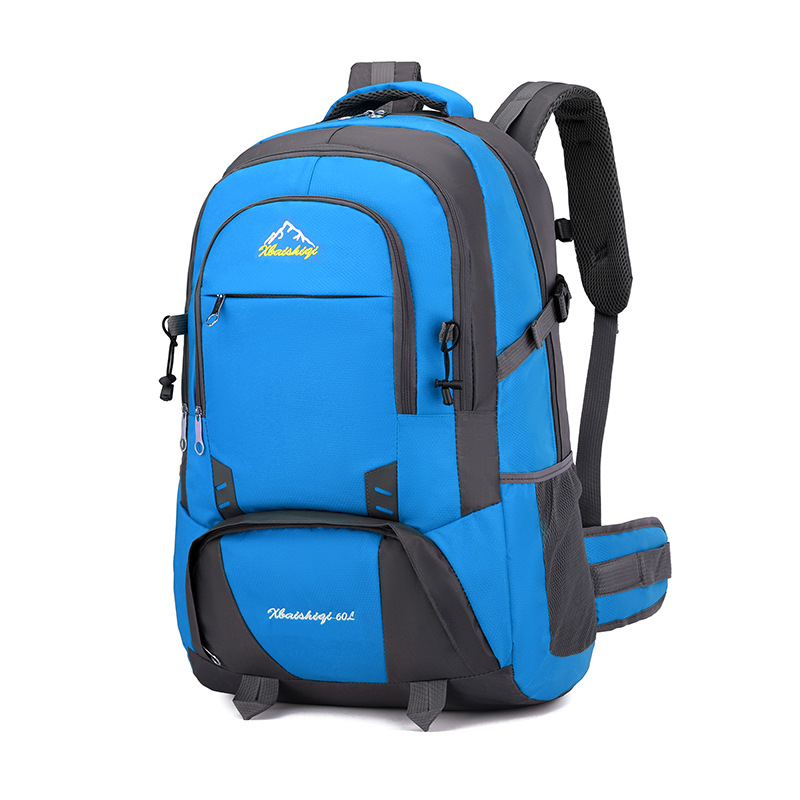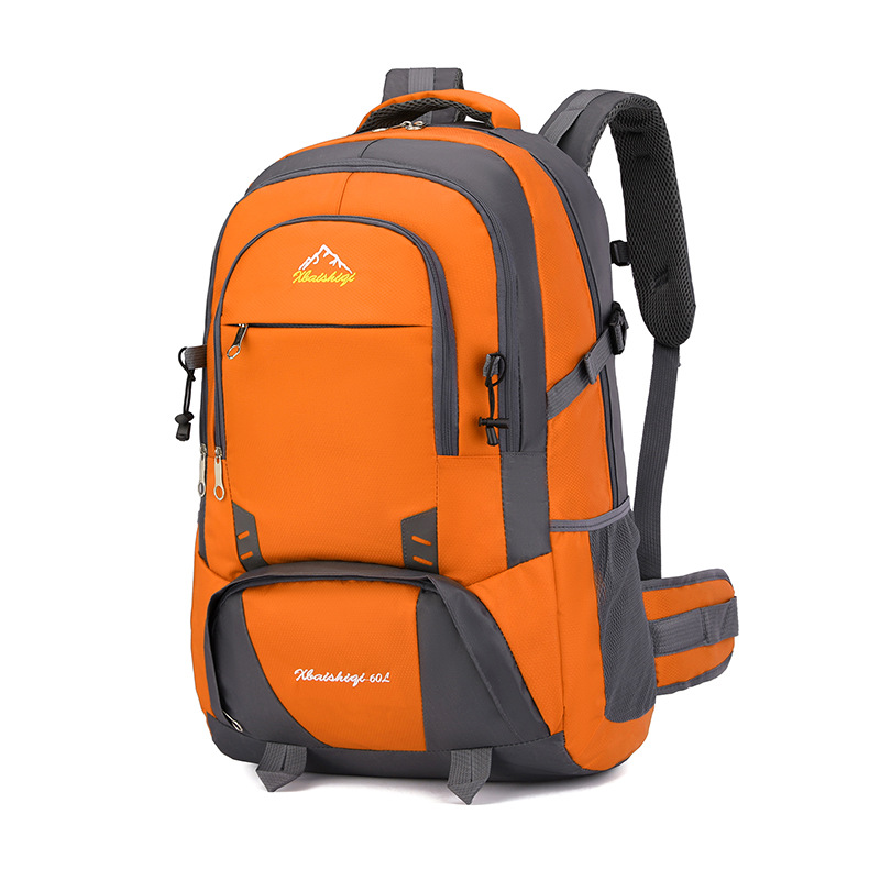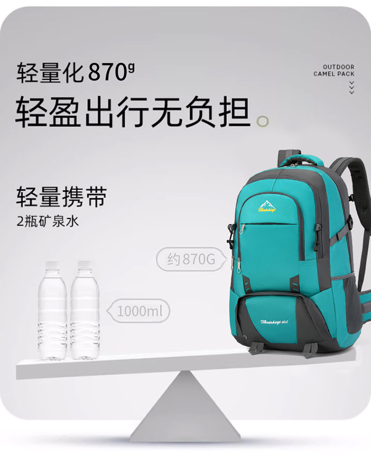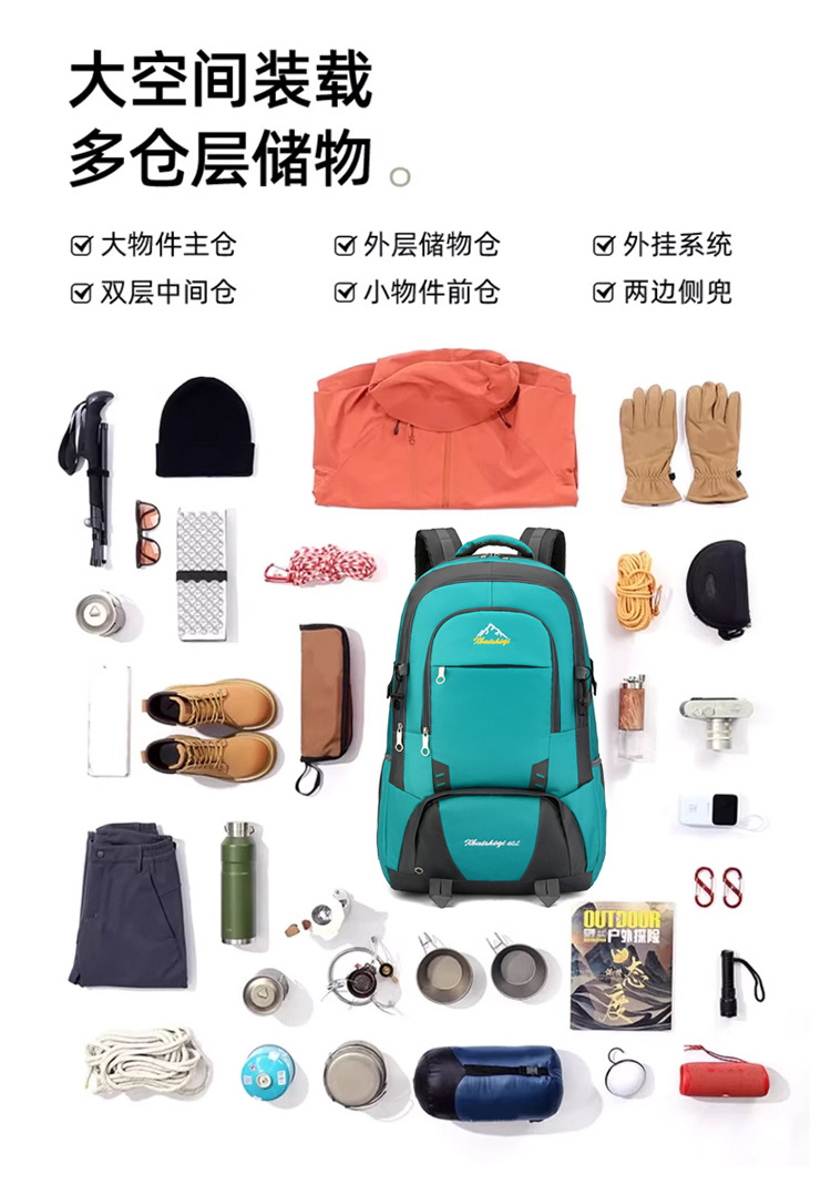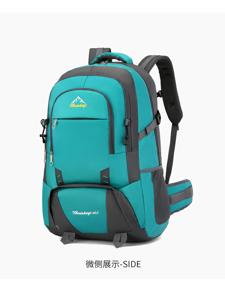 材质: 牛津布 功能: 防水,耐磨 里料质地: 涤纶 品牌: 鑫百狮麒 容量: 60升 背负系统: 气垫背带 适用场景: 户外运动 货号: 1768# 适用性别: 中性/男女均可 颜色: 黑色,红色,橘色,湖蓝色,深蓝色,天蓝色 上市年份季节: 2025年冬季 风格: 都市简约 图案: 字母