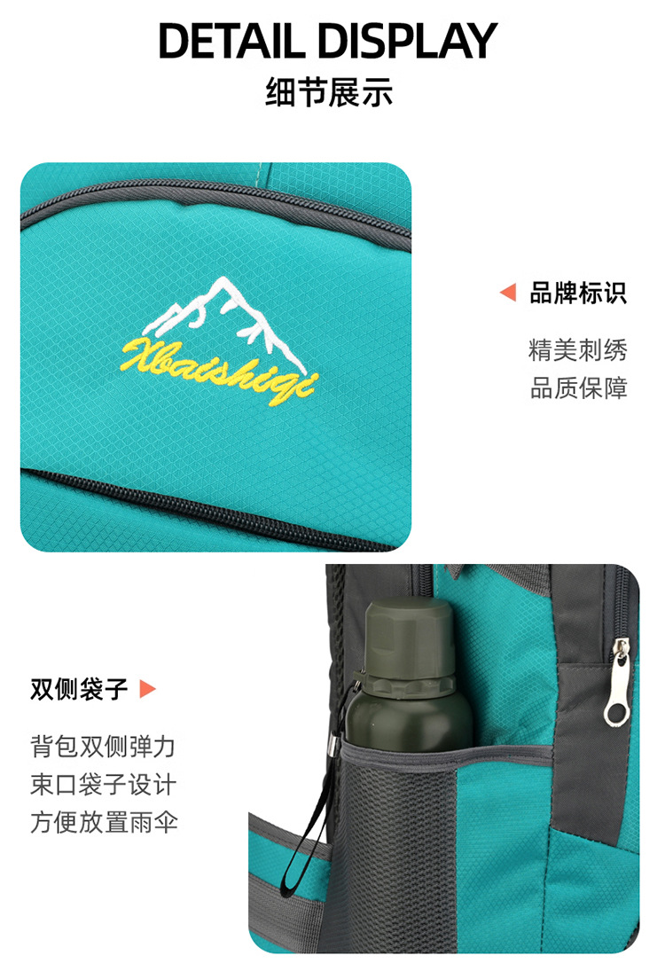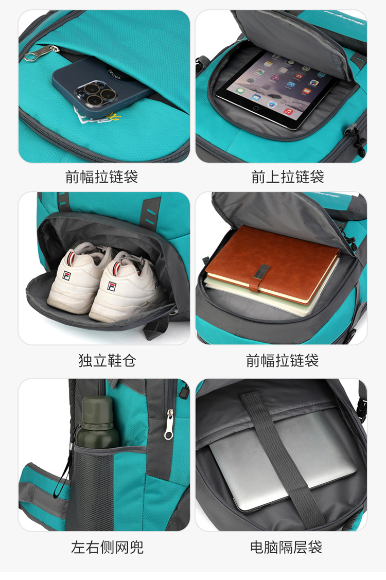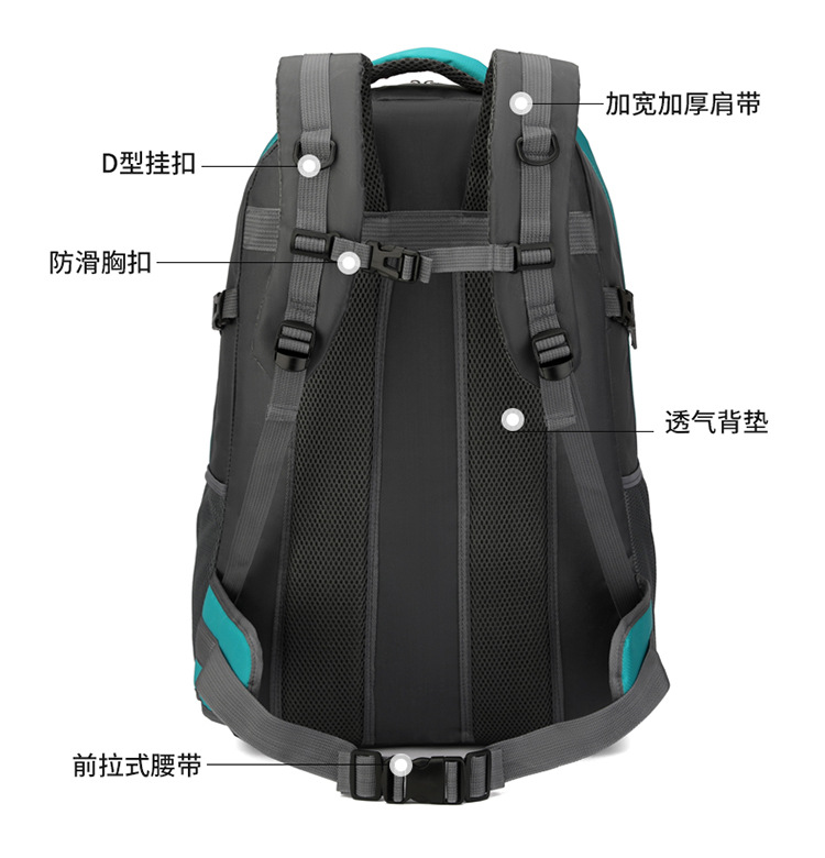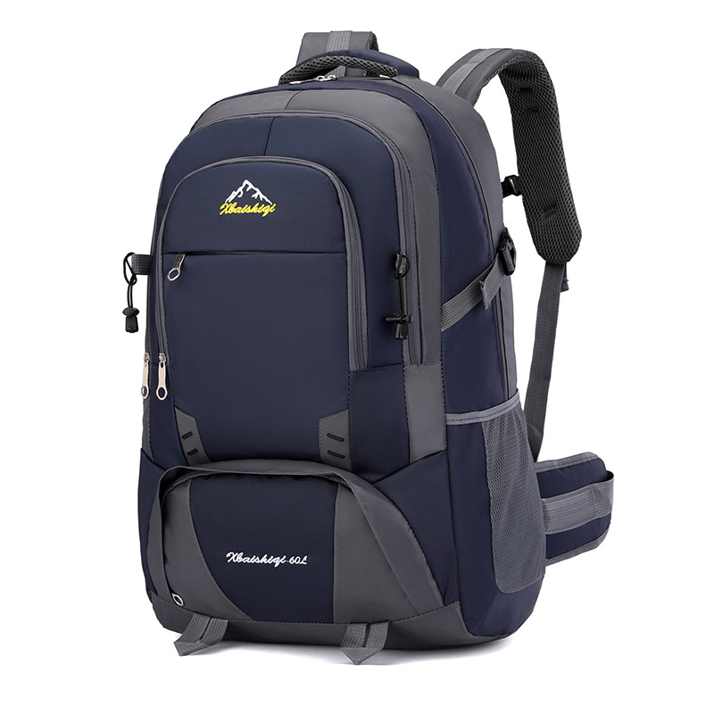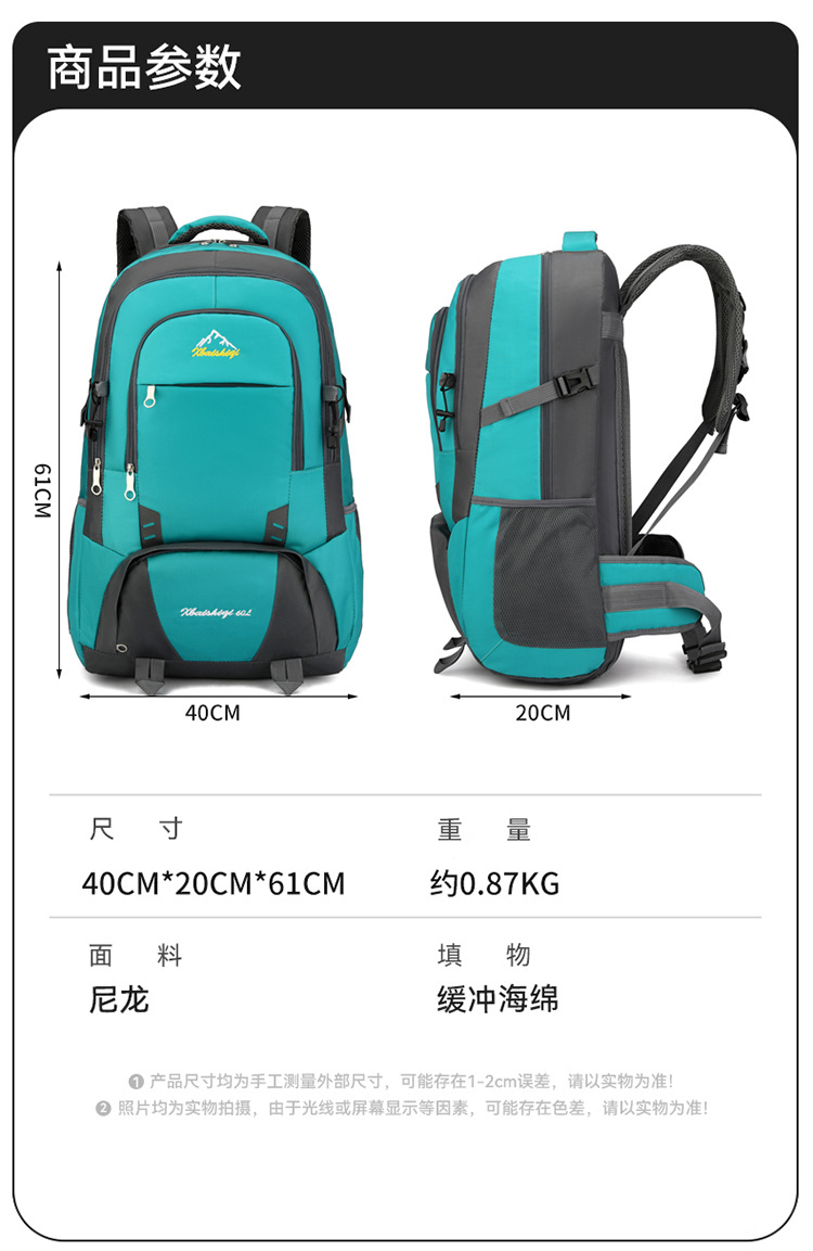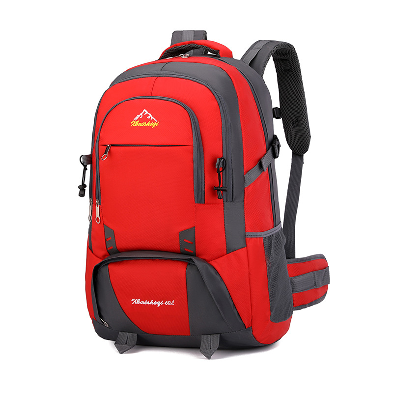 材质: 牛津布 功能: 防水,耐磨 里料质地: 涤纶 品牌: 鑫百狮麒 容量: 60升 背负系统: 气垫背带 适用场景: 户外运动 货号: 1768# 适用性别: 中性/男女均可 颜色: 黑色,红色,橘色,湖蓝色,深蓝色,天蓝色 上市年份季节: 2025年冬季 风格: 都市简约 图案: 字母