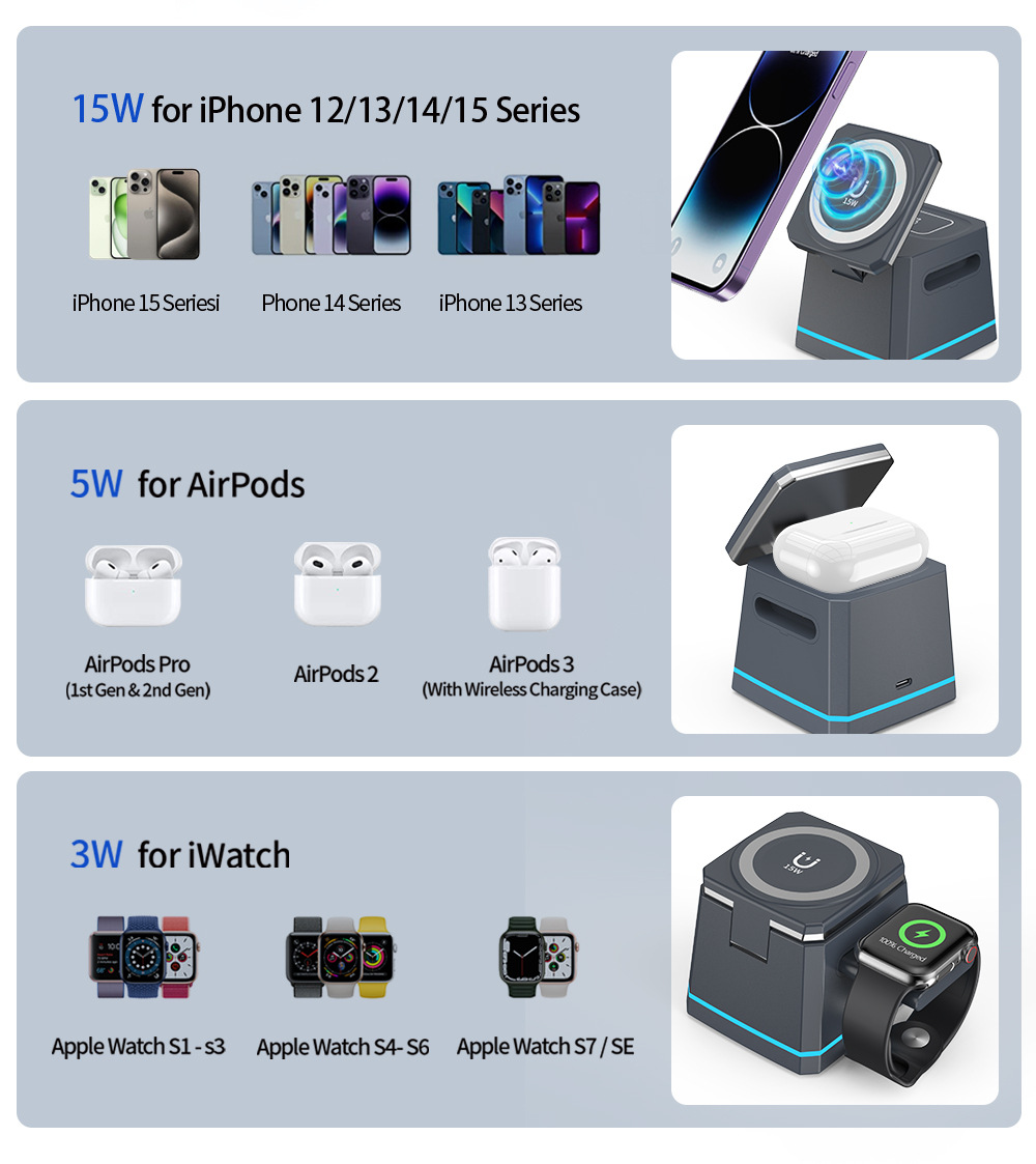 H49跨境新款适用苹果手机耳机手表magsafe磁吸透明三合一无线充电 投诉
