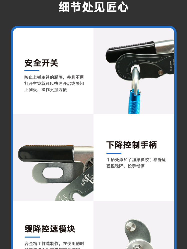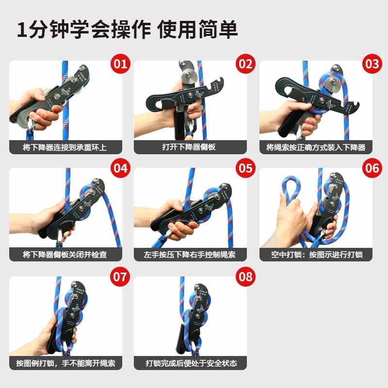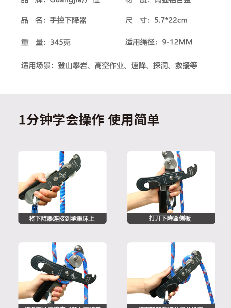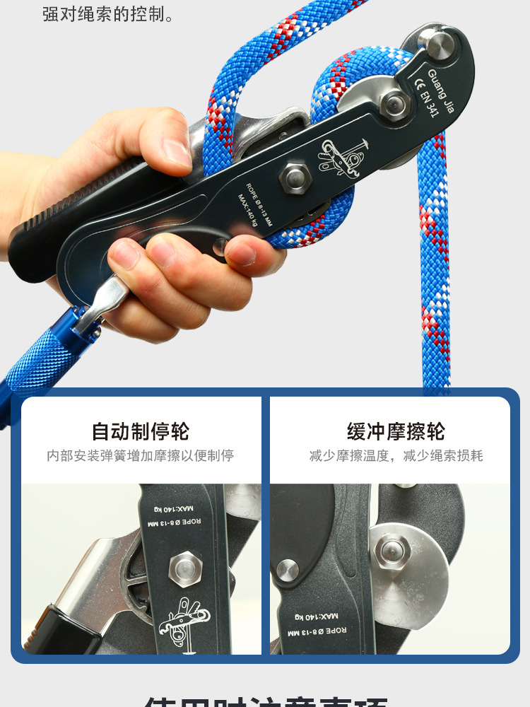 手控下降器攀岩速降装备高空下降保护器缓降器户外登山索降装备 投诉