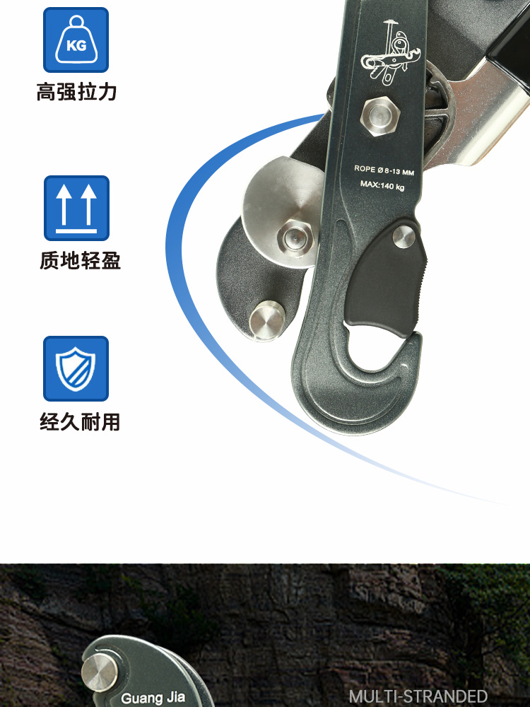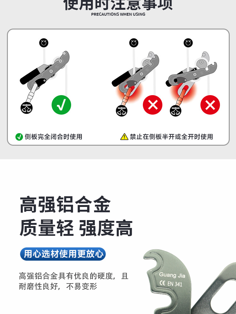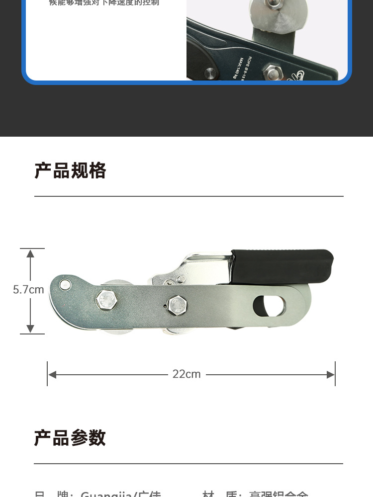 品牌: 广佳 宽度: - 颜色: 黑色 极限承载力: 100kg 材质: 高强铝合金 静态拉力: 15KN 开口长度: - 尺寸: 5.7*22cm 类别: - 单品货号: GJ-XJ22