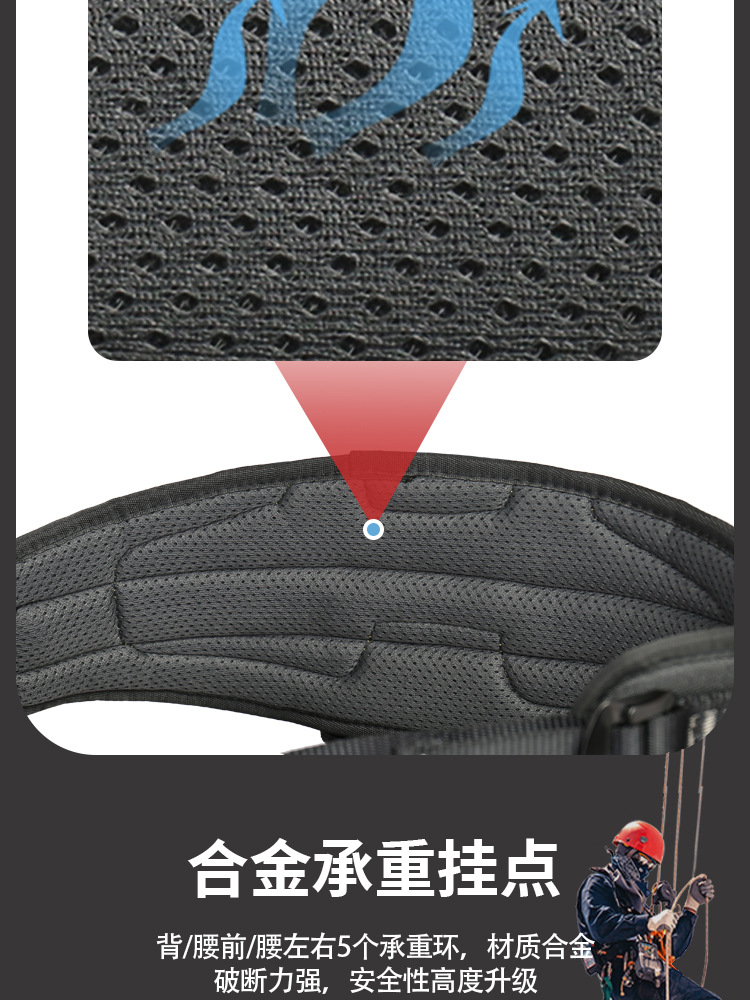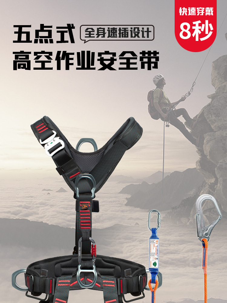 CE认证安全带五点式高空作业户外攀岩背带铝合金双钩轻量化速插款