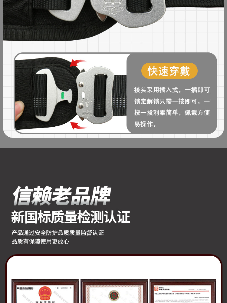 CE认证安全带五点式高空作业户外攀岩背带铝合金双钩轻量化速插款 投诉