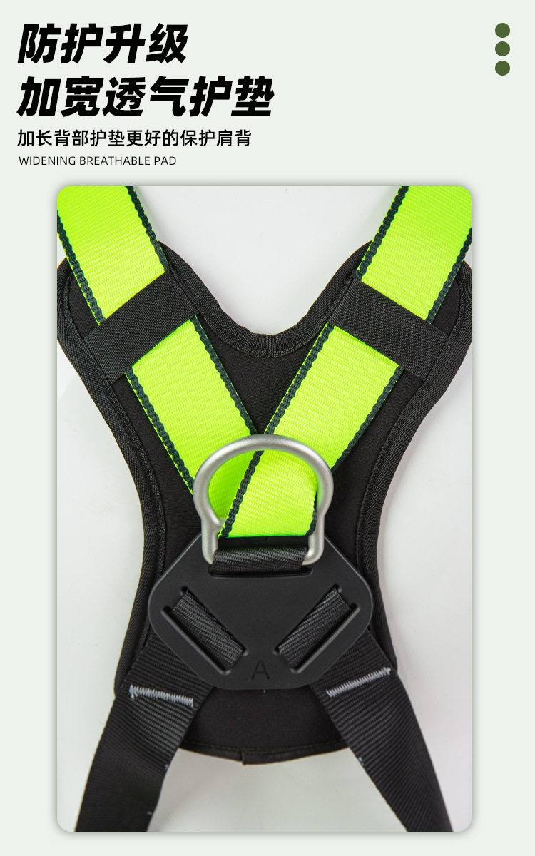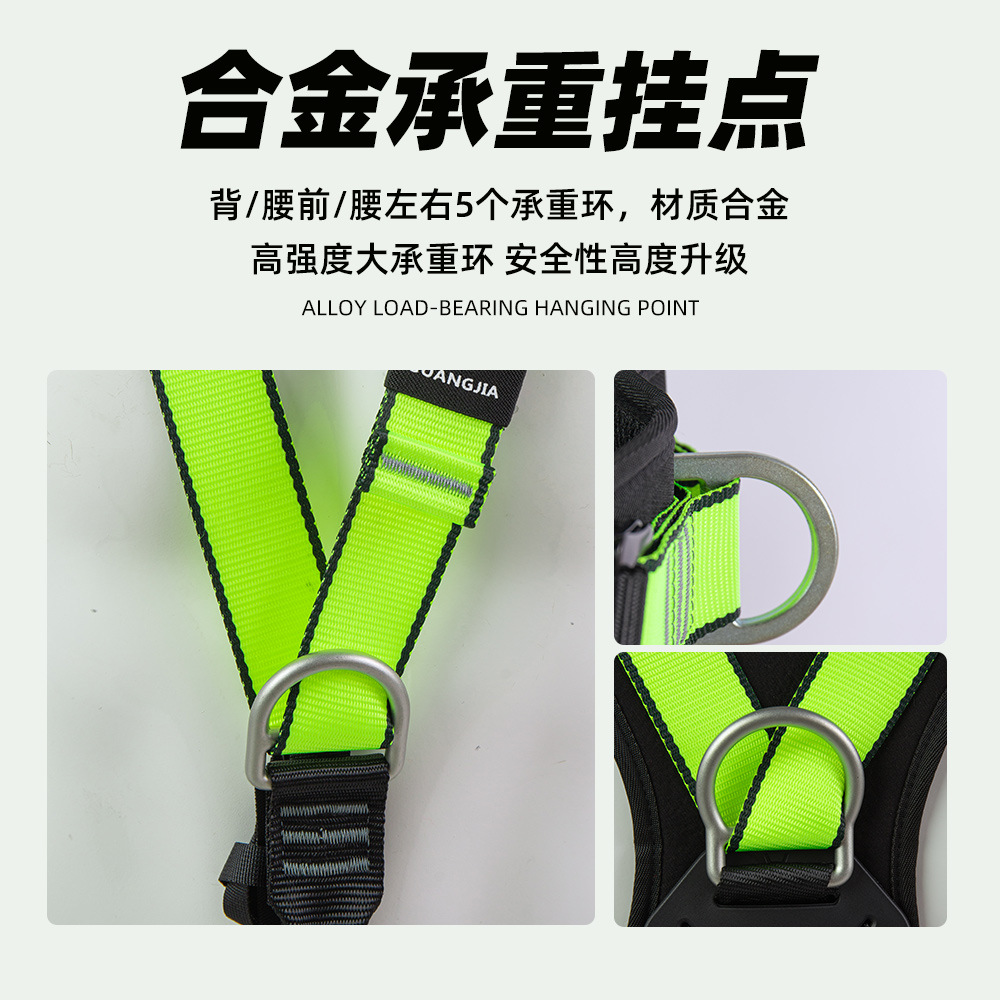 安全带材质: 涤纶 品牌: 广佳 使用载荷: - 织带宽度: 44mm 绳长: - 颜色: 绿色黑色 断破拉力: 22KN 标准编号: 国标GB6095-2021 单品货号: GJ717 腰围: 80-120cm
