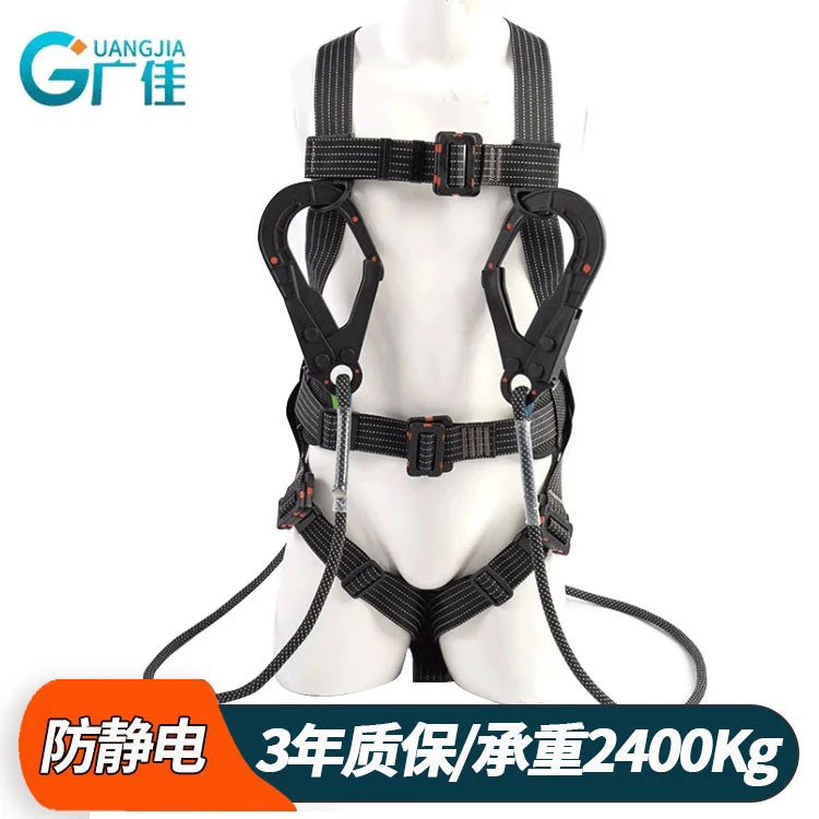 安全带材质: 涤纶 品牌: 广佳 安全绳材质: 涤纶 使用载荷: 2200kg 织带宽度: 44mm 绳长: 2米 颜色: 黑色 断破拉力: 22KN 标准编号: 国标GB6095-2021 单品货号: GJ-UU05