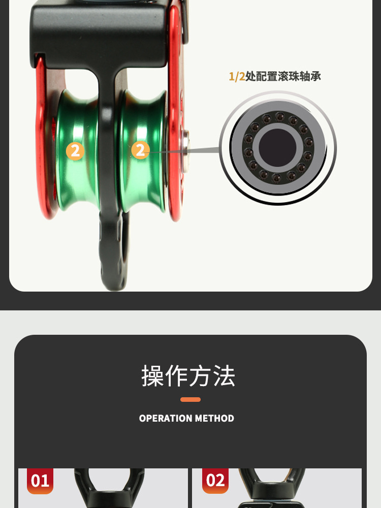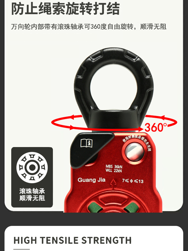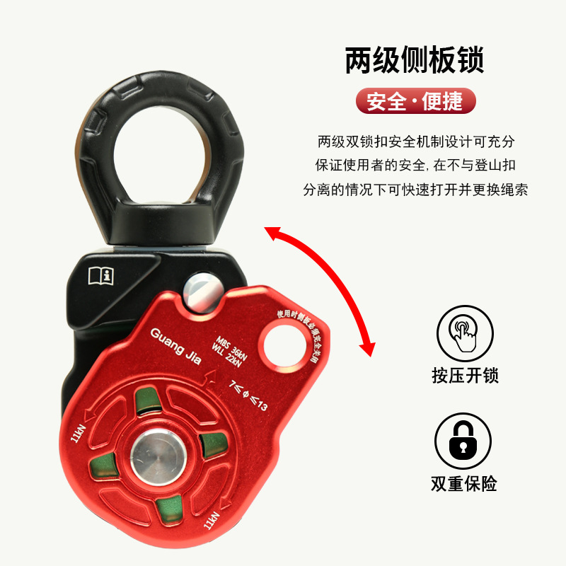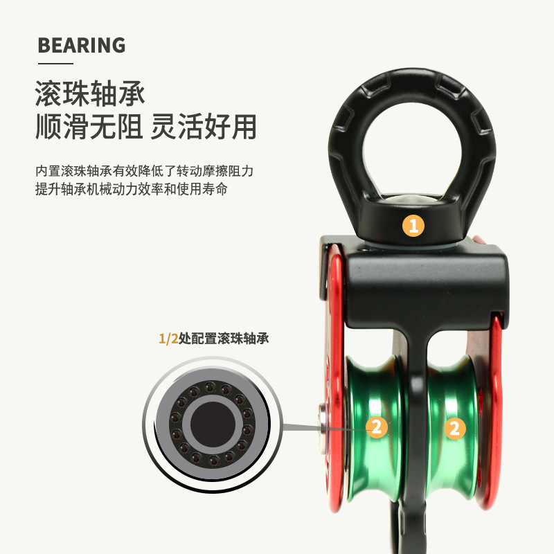 铝合金万向滑轮旋转环高空作业万向节侧板滑轮登山攀岩装备HL968