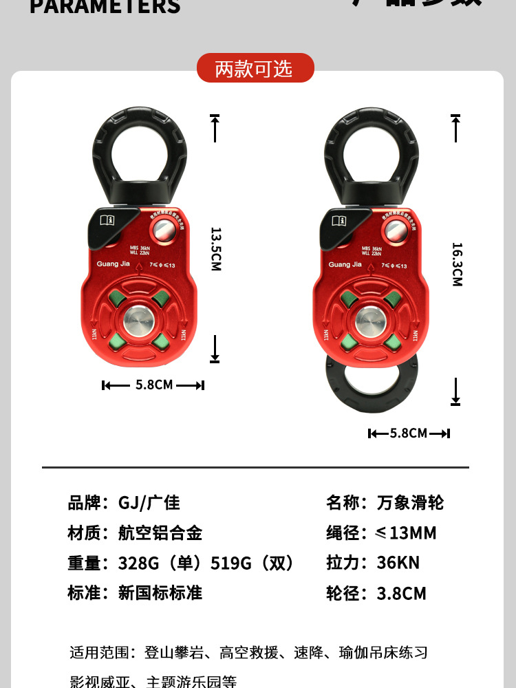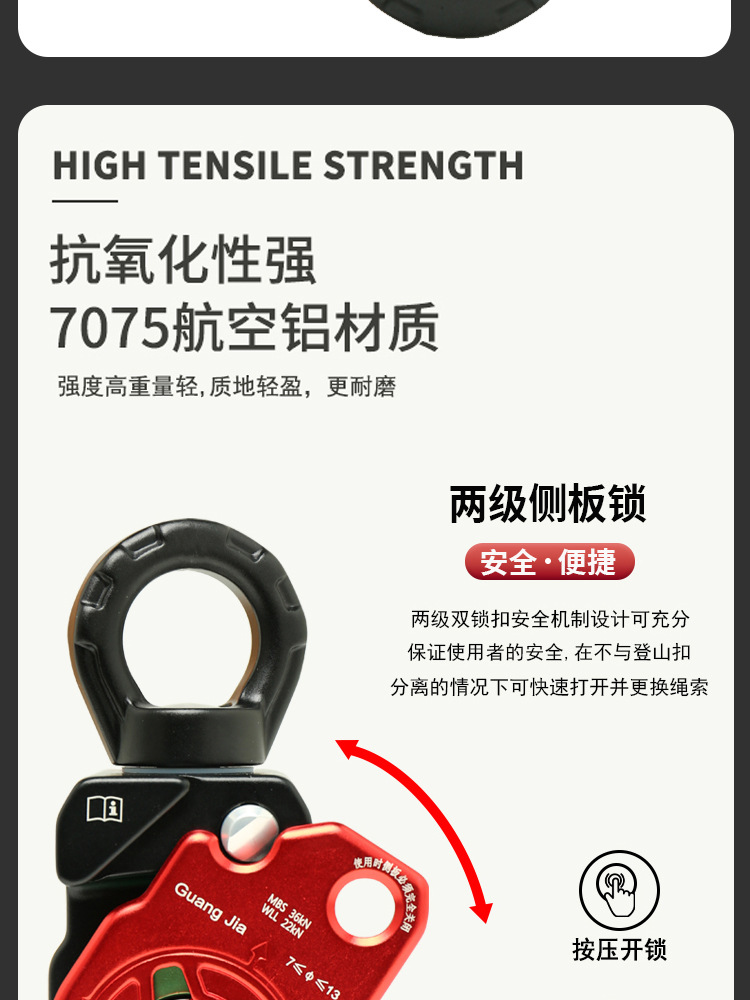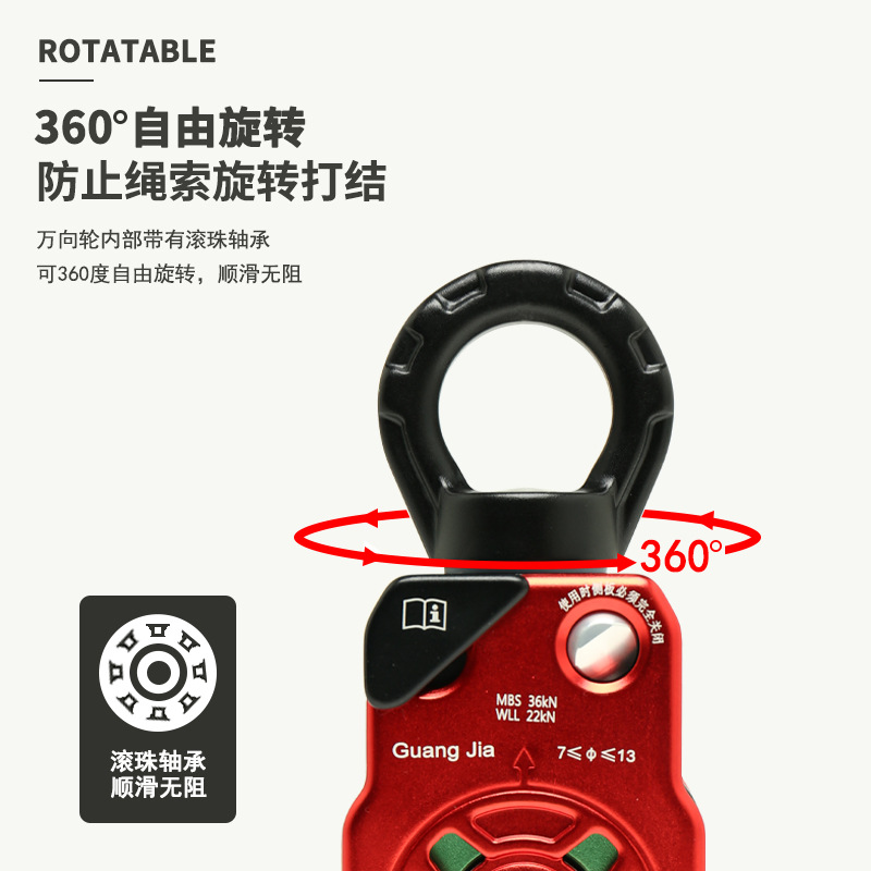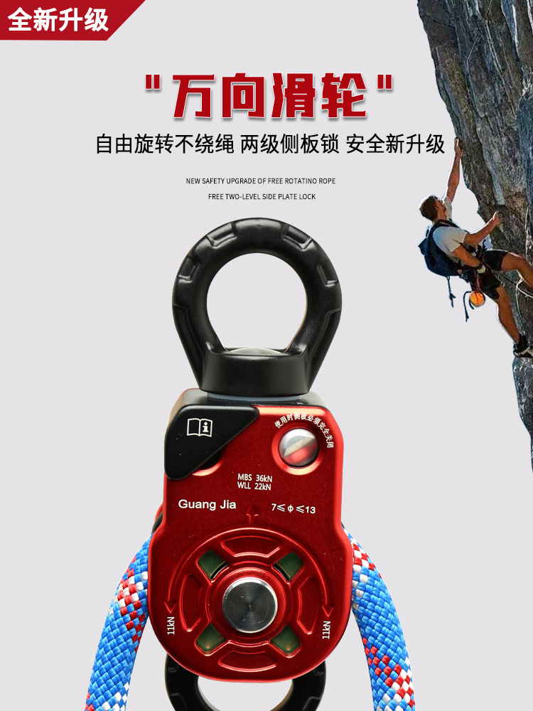 铝合金万向滑轮旋转环高空作业万向节侧板滑轮登山攀岩装备HL968 投诉