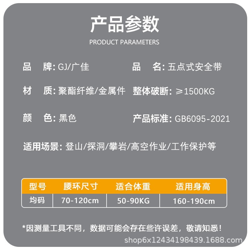 安全带材质: 涤纶 品牌: 广佳 安全绳材质: 涤纶 织带宽度: 45mm 标准编号: 国标GB6095-2021 单品货号: FD1022