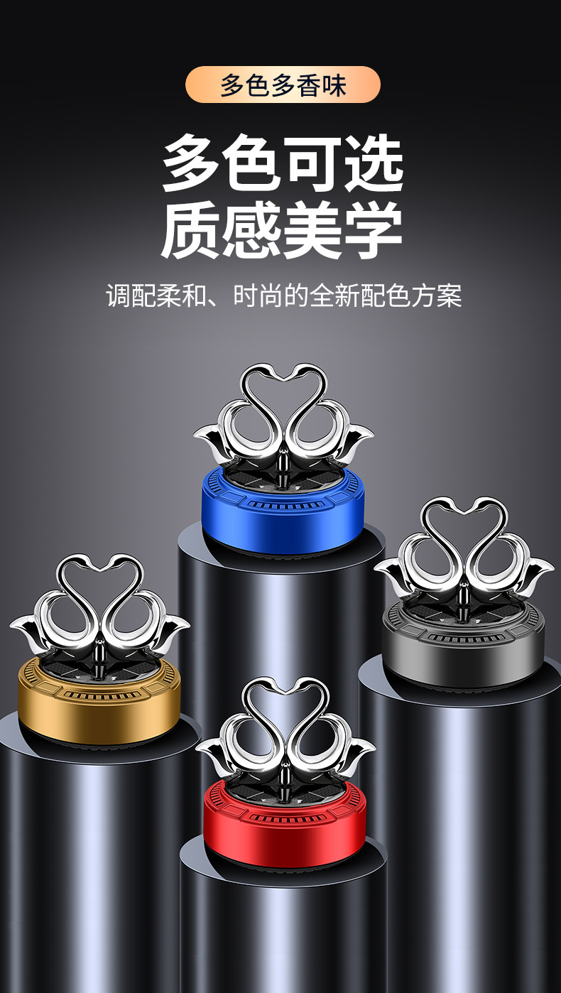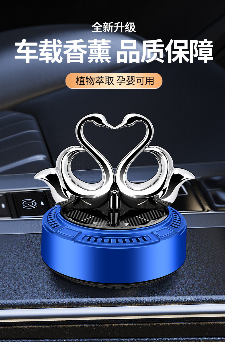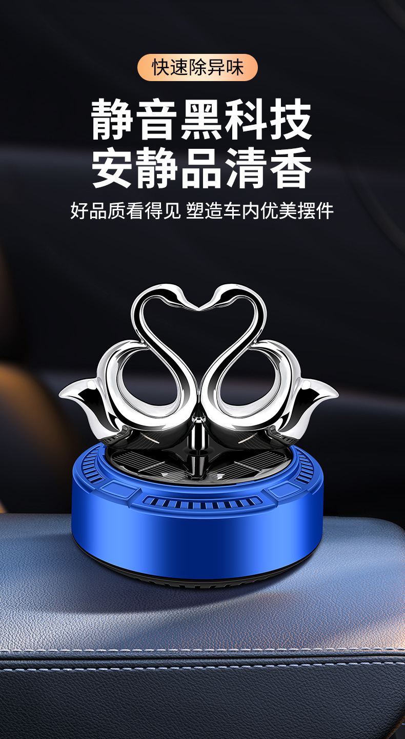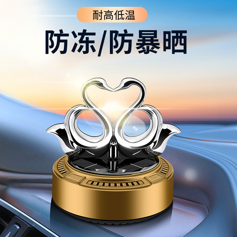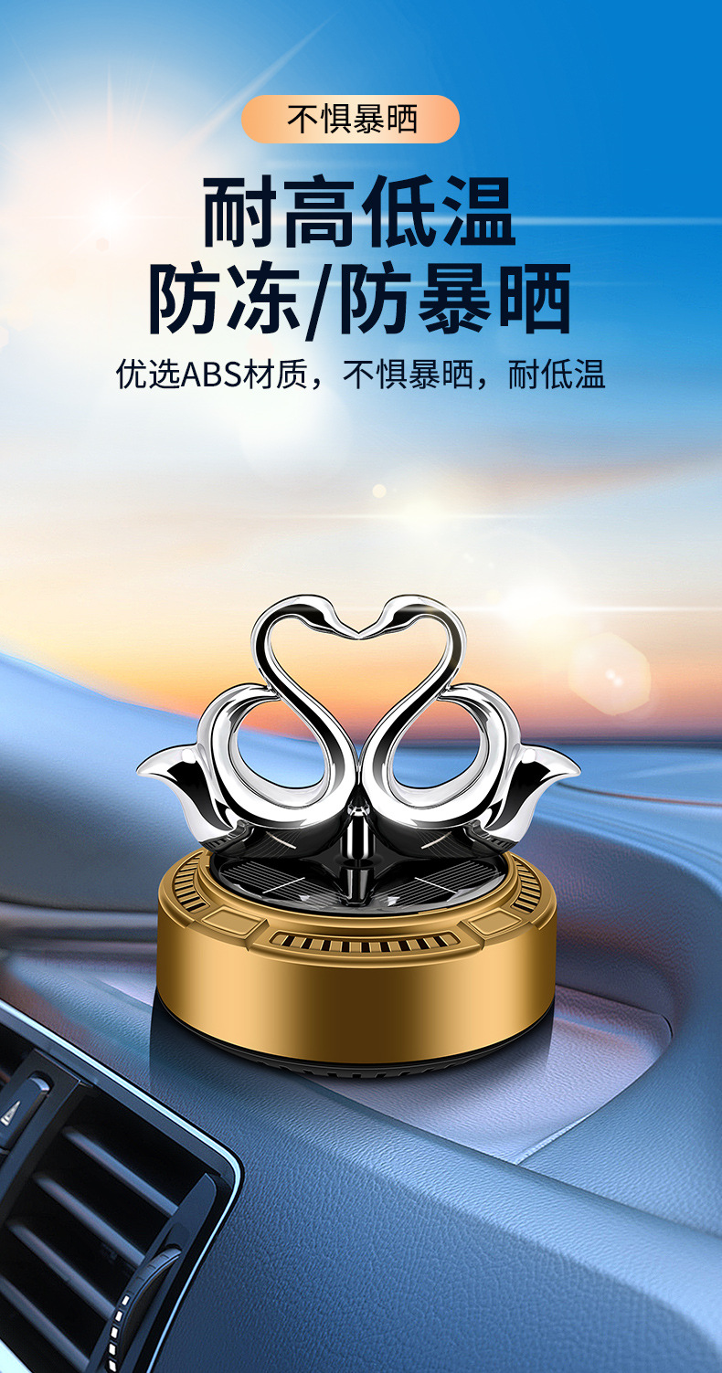 太阳能车载香薰汽车香水双天鹅自动旋转香氛除异味持久淡香摆件 English | 投诉