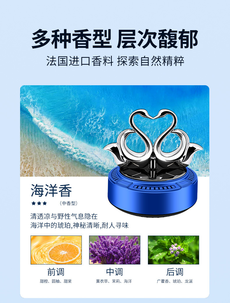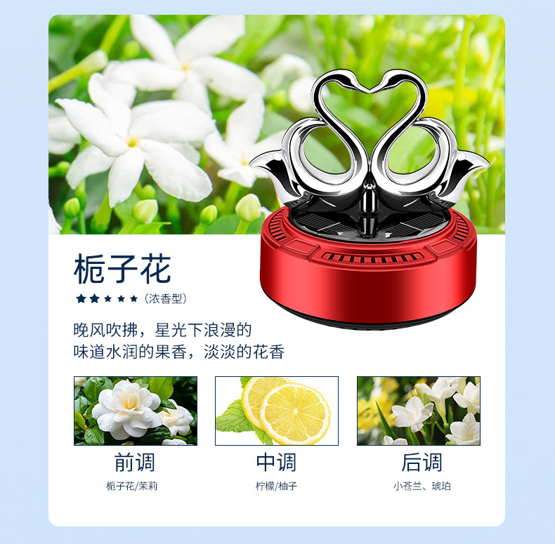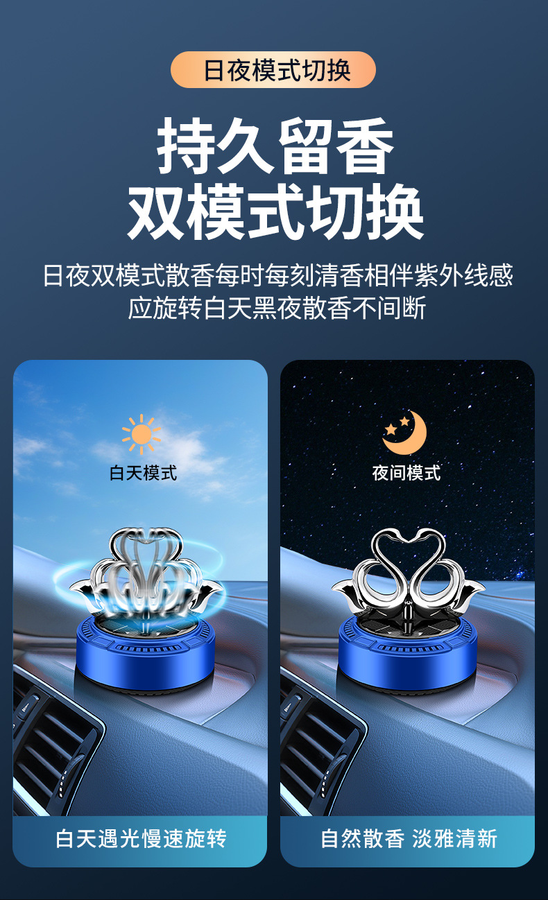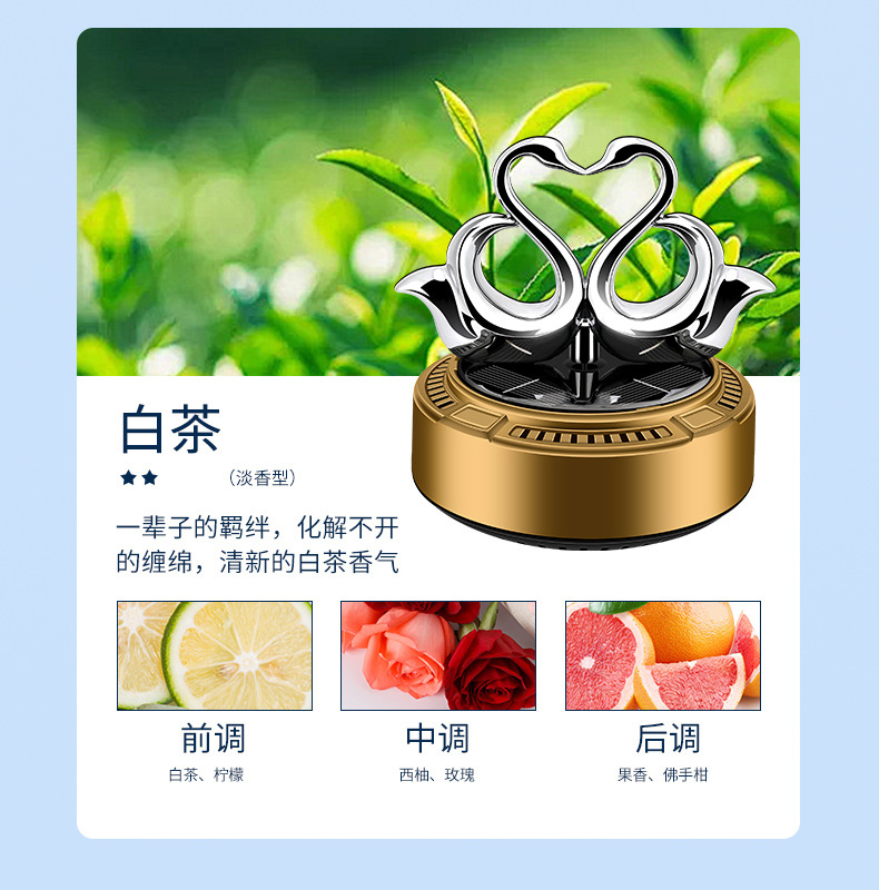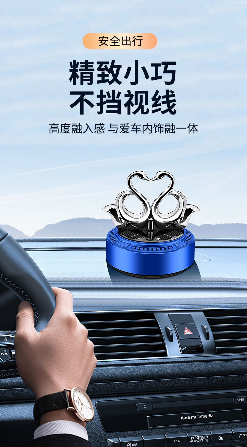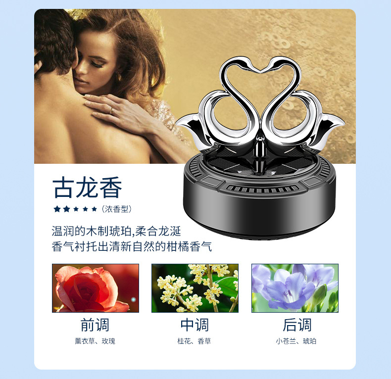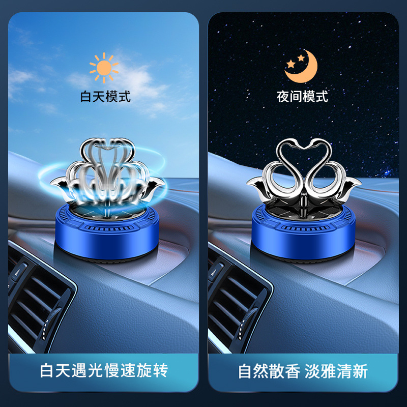 太阳能车载香薰汽车香水双天鹅自动旋转香氛除异味持久淡香摆件 English | 投诉