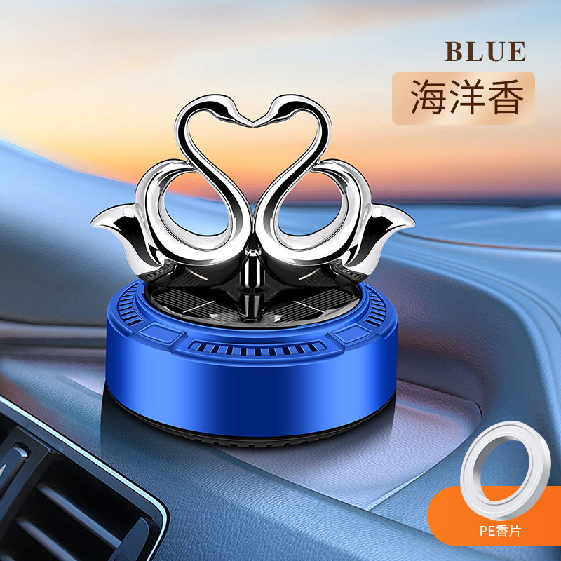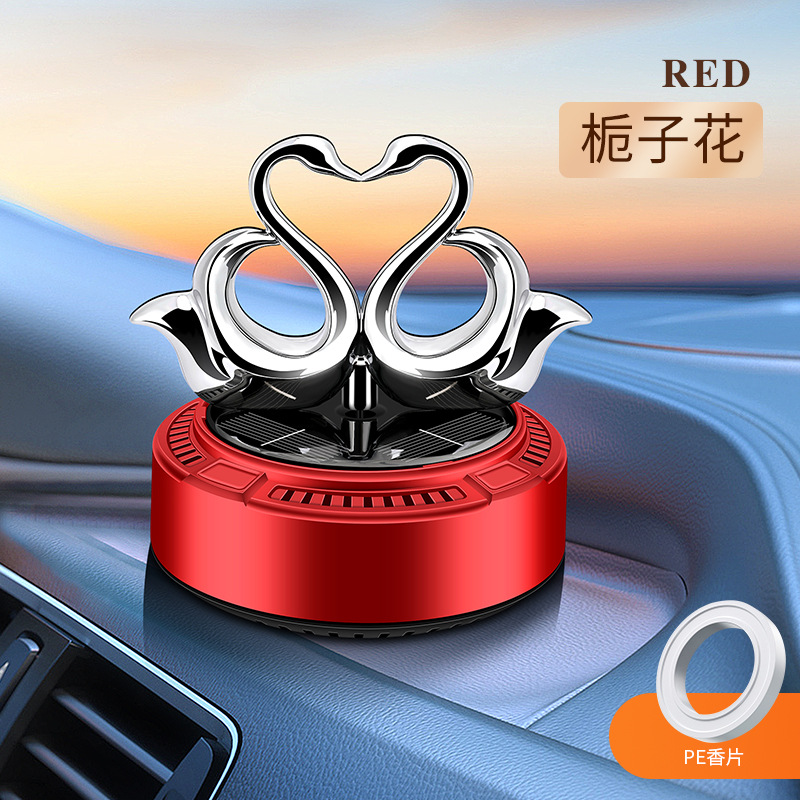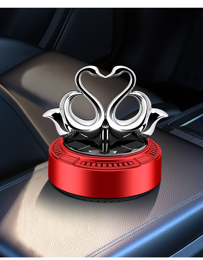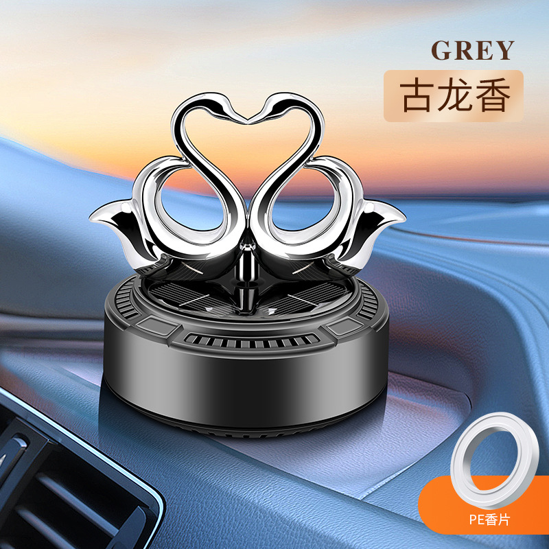 太阳能车载香薰汽车香水双天鹅自动旋转香氛除异味持久淡香摆件