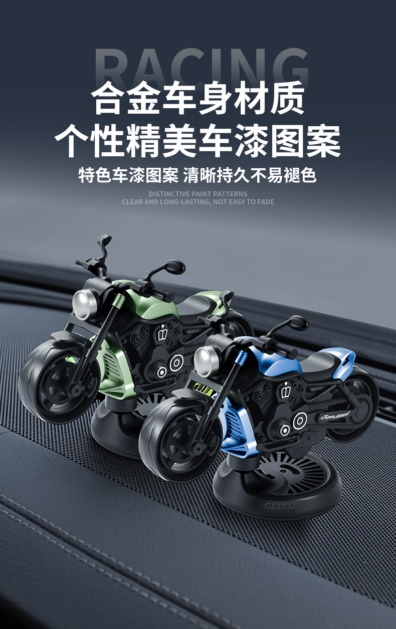 跨境外贸车载香薰摆件旋转漂移合金玩具摩托模型仿真汽车香水跑车