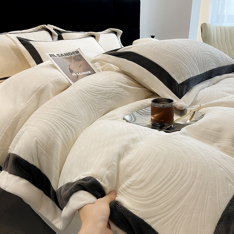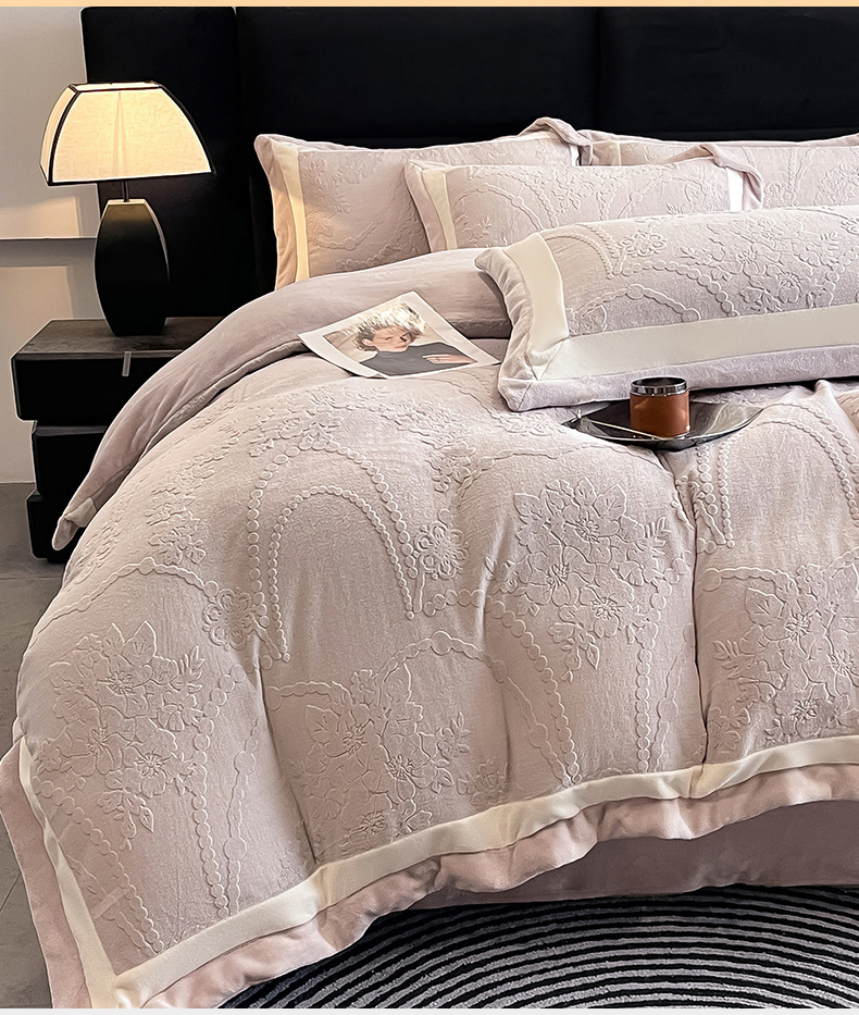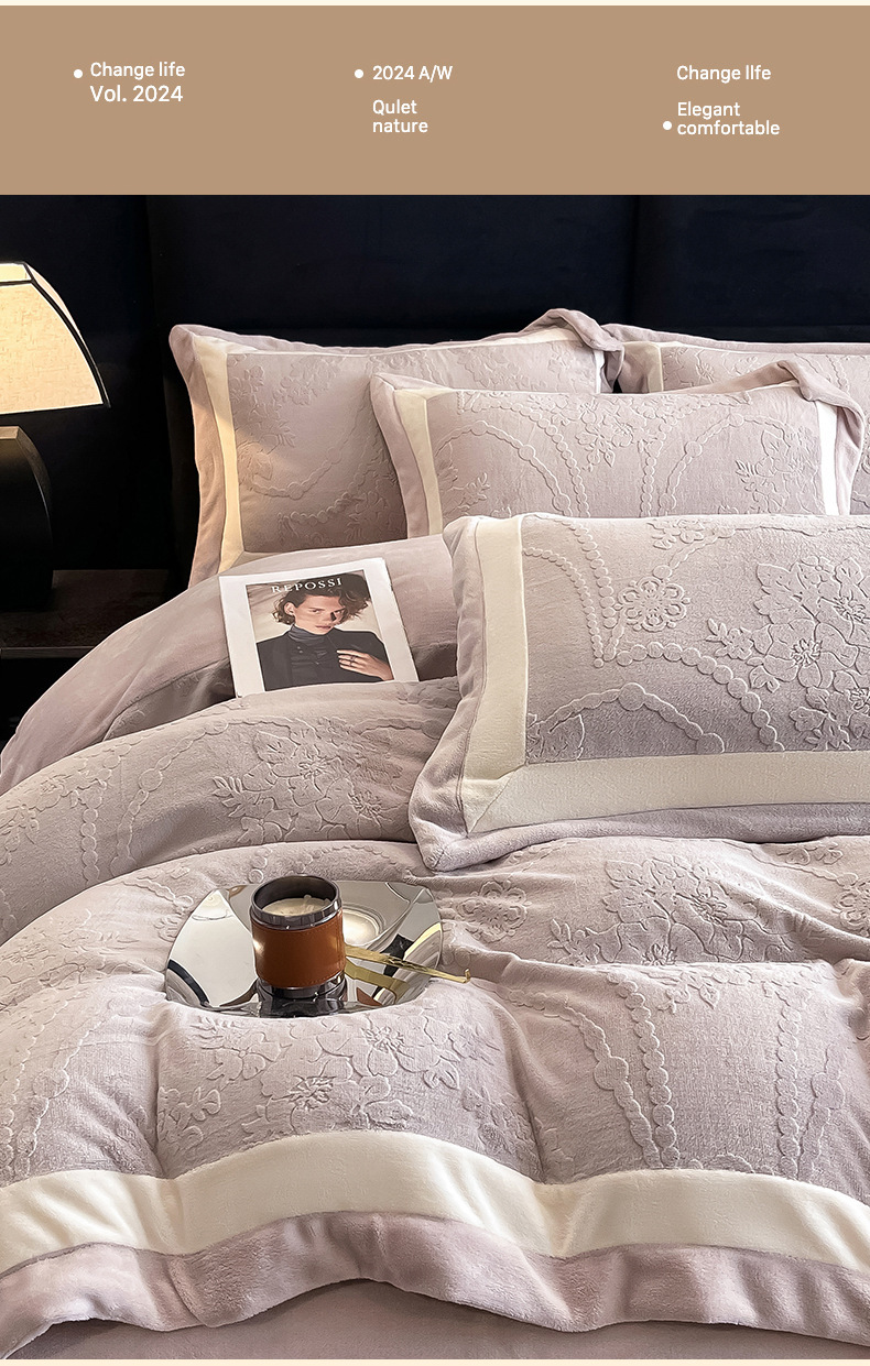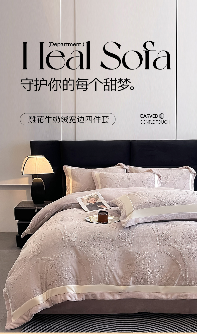 本公司生产全涤类、全棉类床品套件,包括磨毛布、牛奶绒、天丝、棉布等,印花、提花、绣花等品类齐全,面料克重、款式、尺寸、颜色等皆可定制,成品和面料都可出口,详情可咨询。