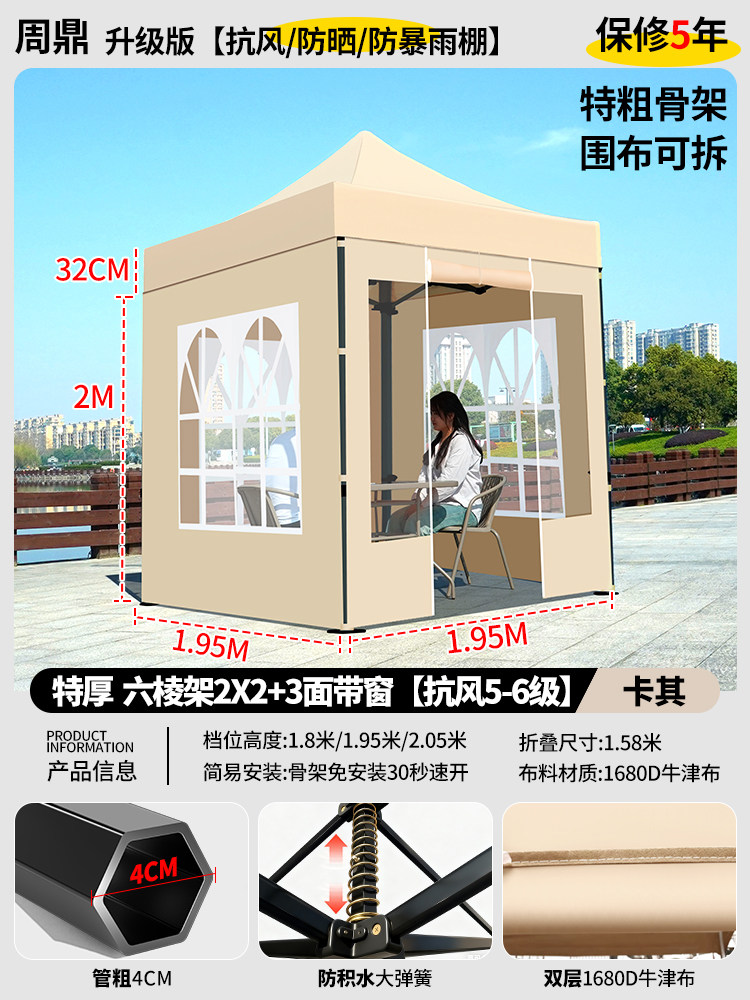 特厚 黑六棱 2*2+3面窗户 卡其色 (挡强风⭐保暖+防雨+大空间) ¥34900 200件可售