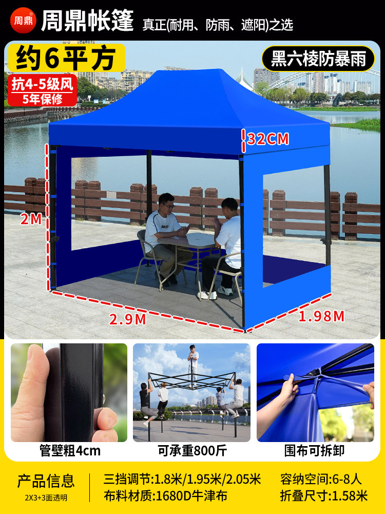 特厚 黑六棱 3*3+3面透明 蓝色 (挡强风⭐保暖+防雨+大空间) ¥40000 200件可售