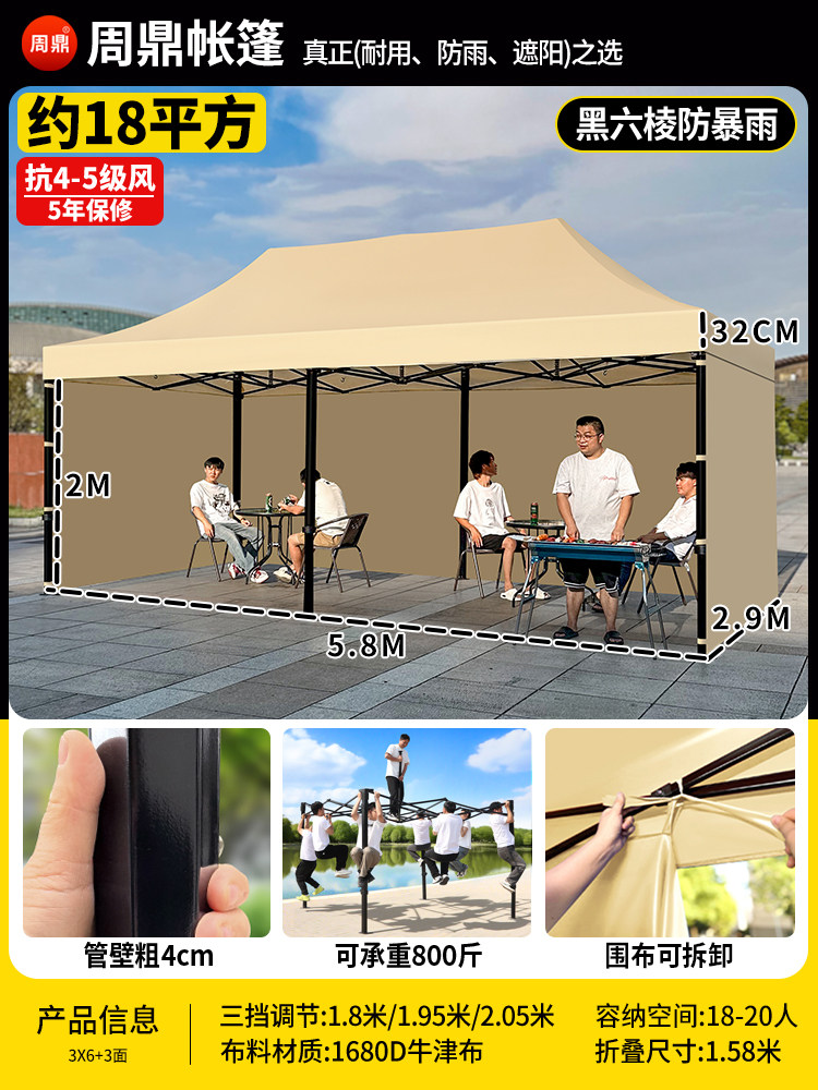 特厚 黑六棱 3*6+3面围布 卡其色 (挡强风⭐保暖+防雨+大空间) ¥67400 200件可售
