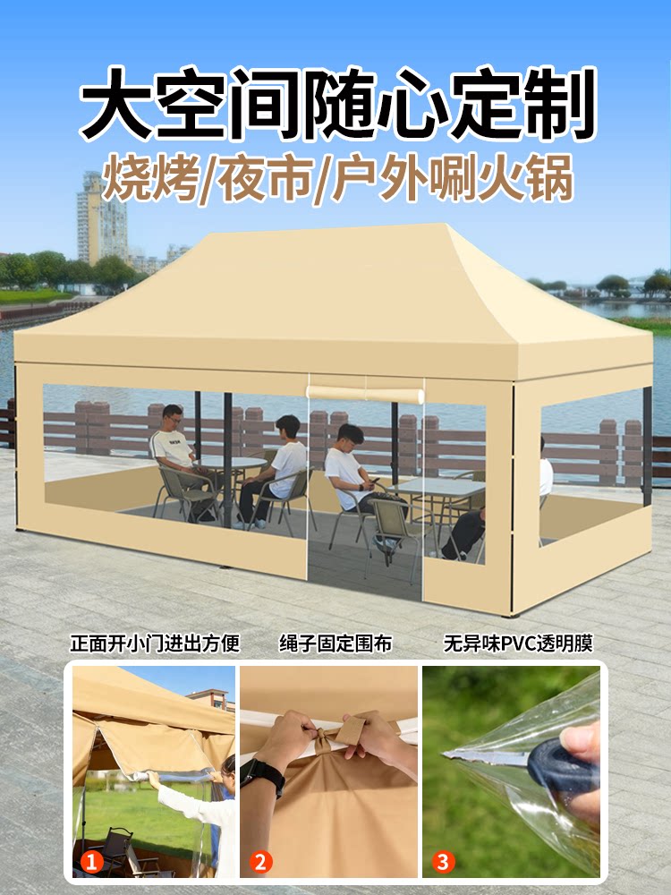 冬季保暖帐篷围布四脚透明防雨棚户外夜市摆摊用大伞伸缩式遮阳棚 English | 投诉