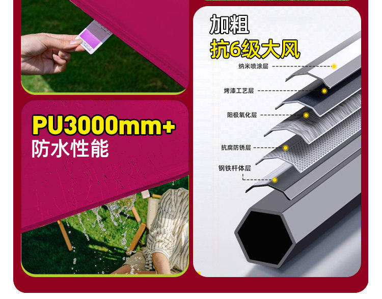 特厚 黑六棱 3*4.5酒红色 【特厚篷布 管粗4cm 保修5年】 ¥41900 200件可售