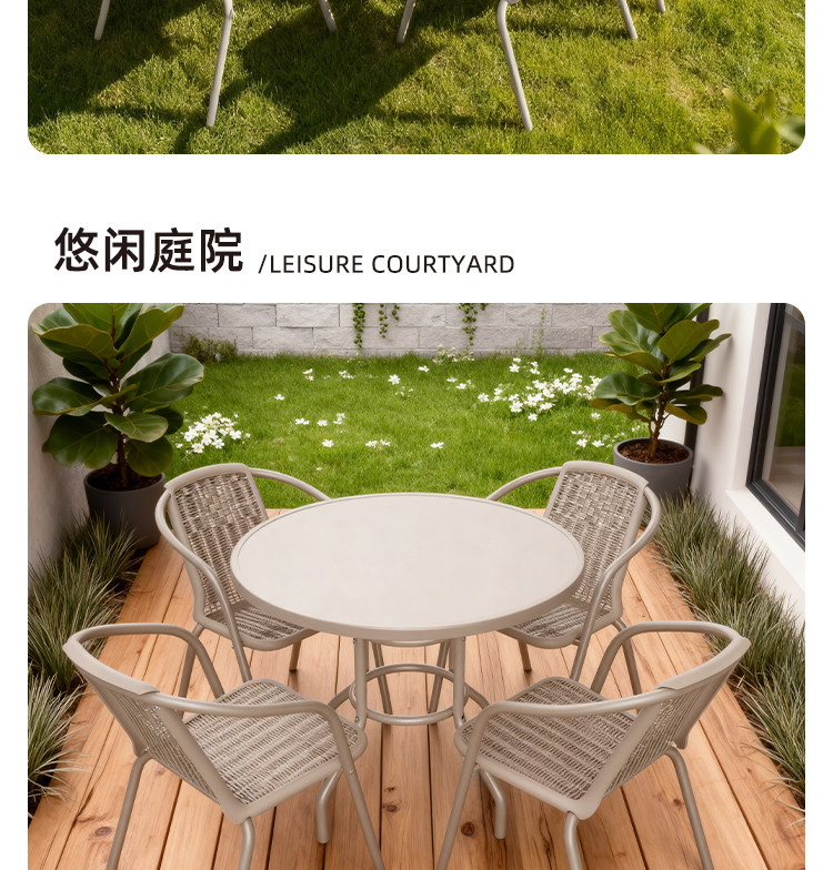 | 80cm铁盘香槟灰圆桌+4个椅子 | ¥39100 | 200件可售 |