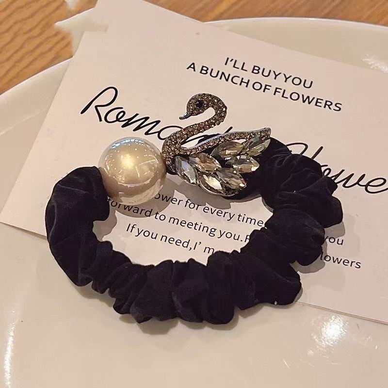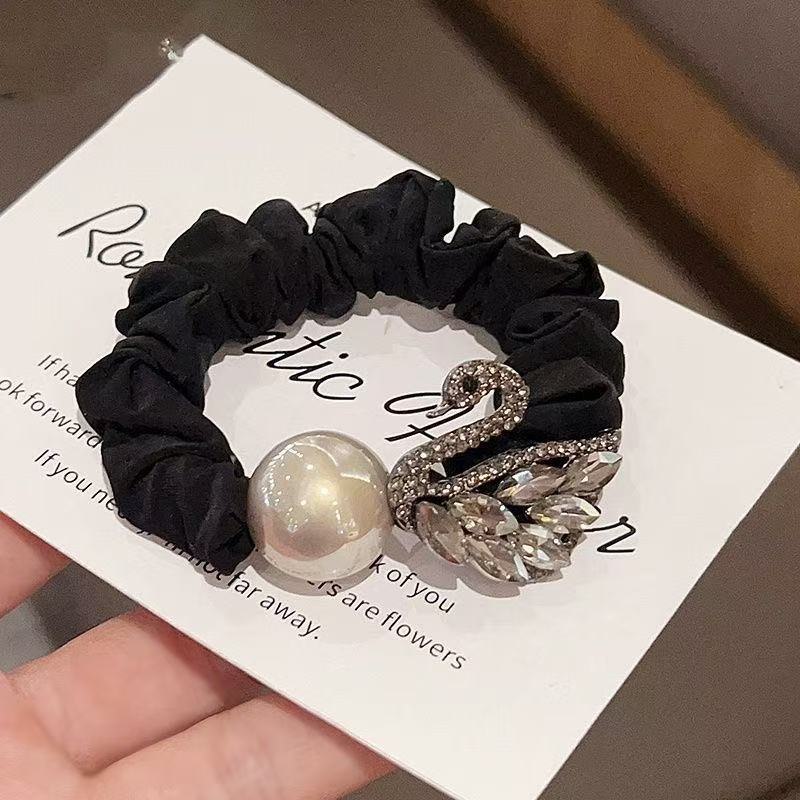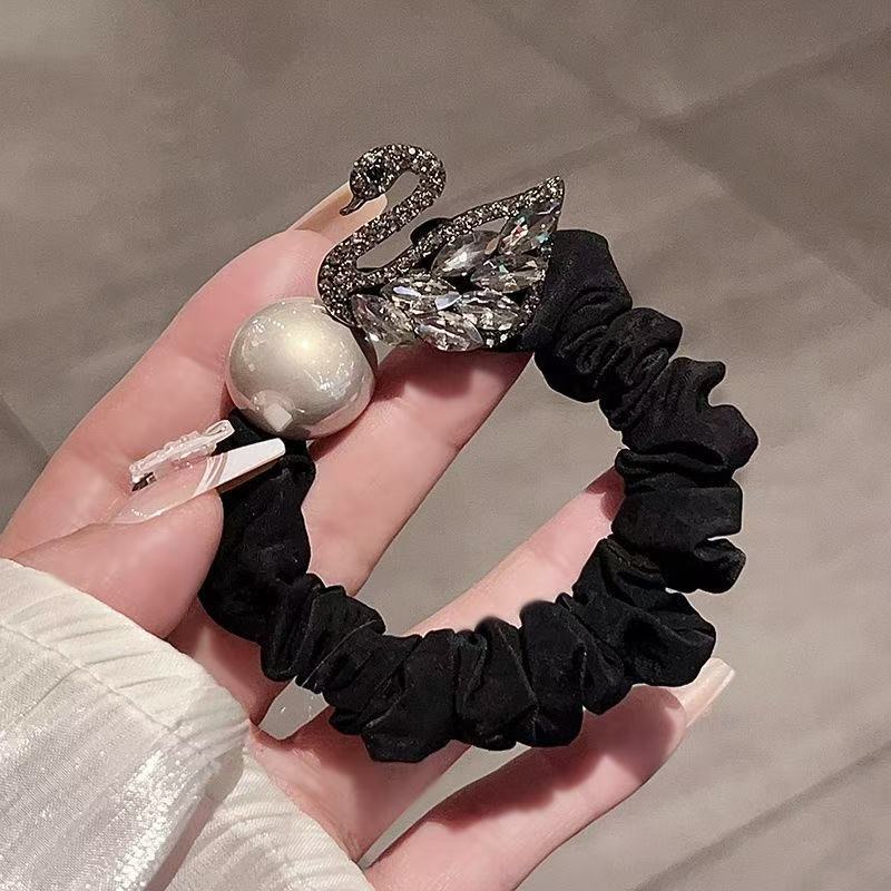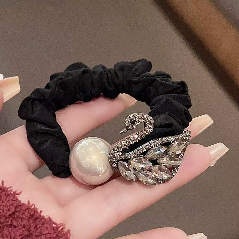新款闪钻天鹅珍珠小肠圈百搭少女扎马尾气质头绳高弹力丸子头发绳