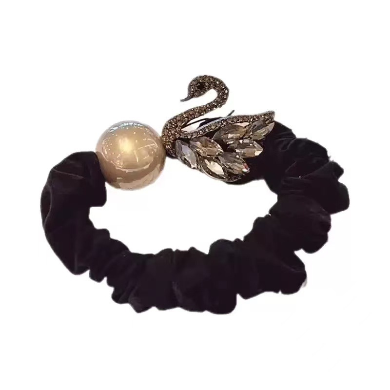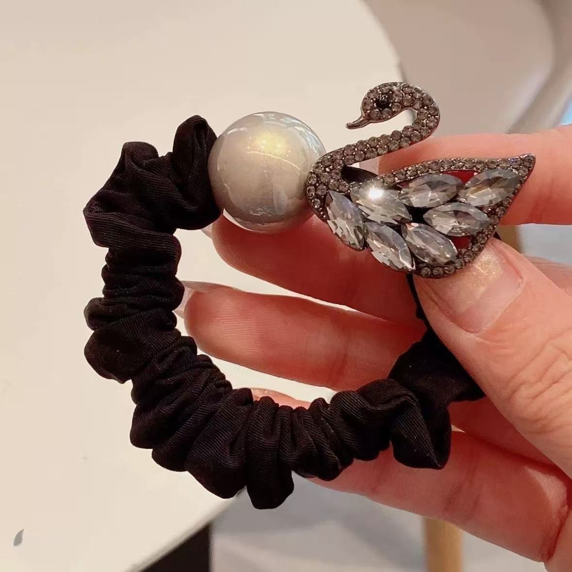 新款闪钻天鹅珍珠小肠圈百搭少女扎马尾气质头绳高弹力丸子头发绳 English | 投诉