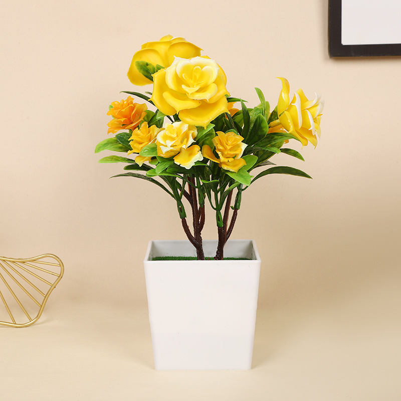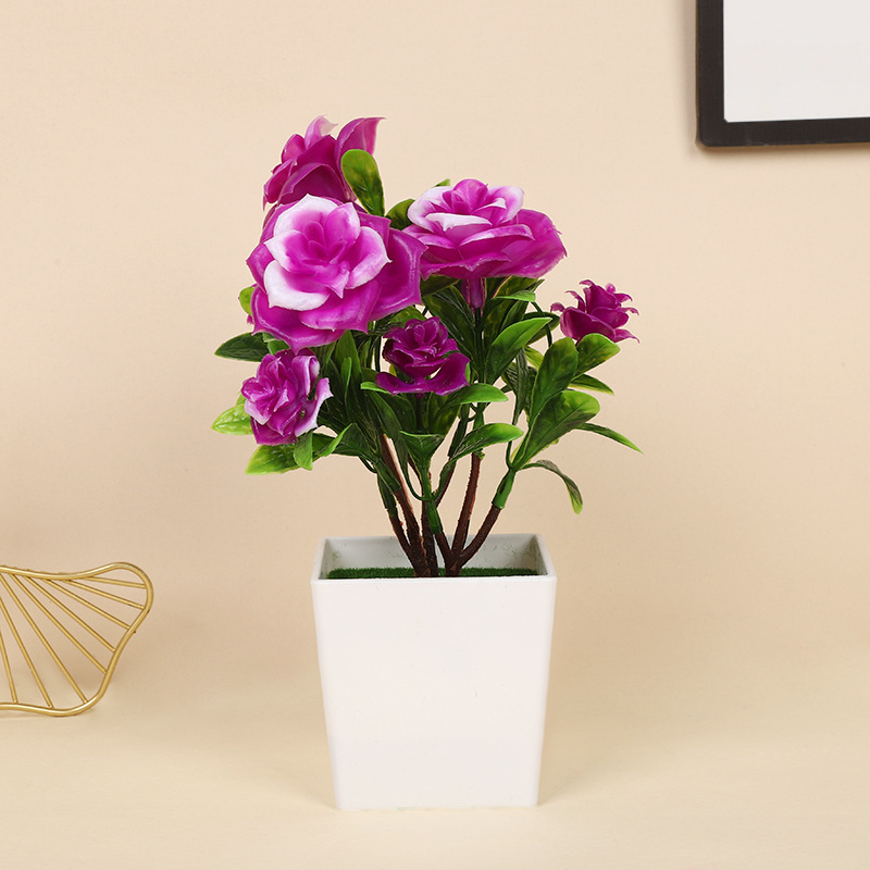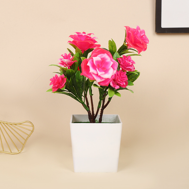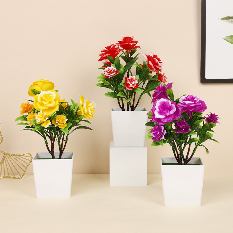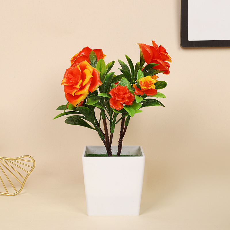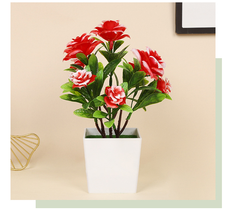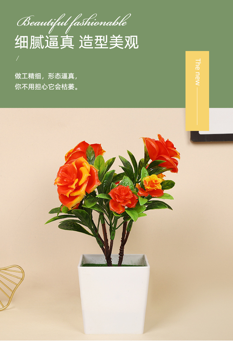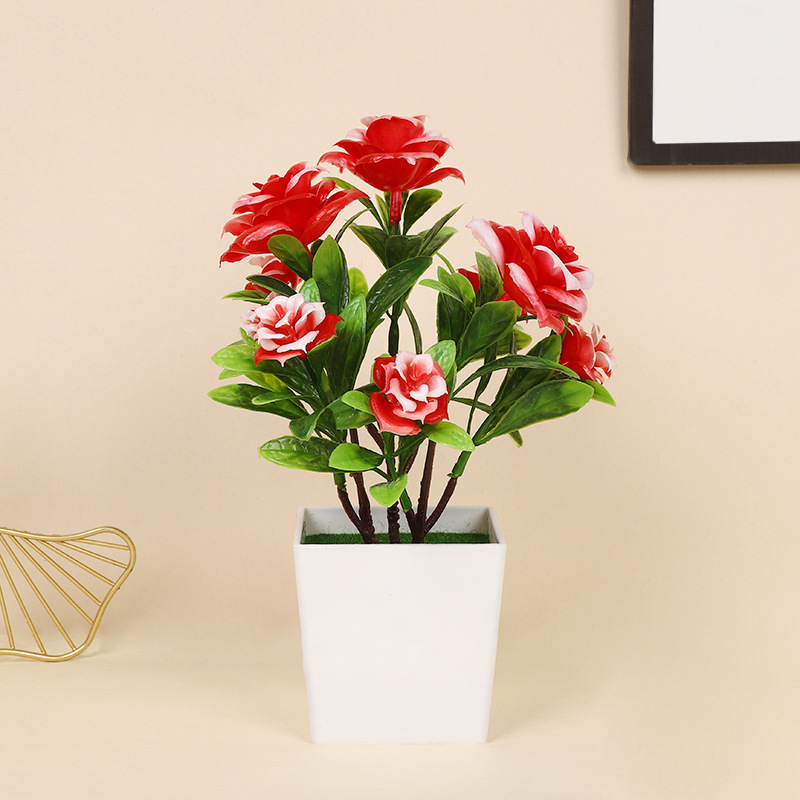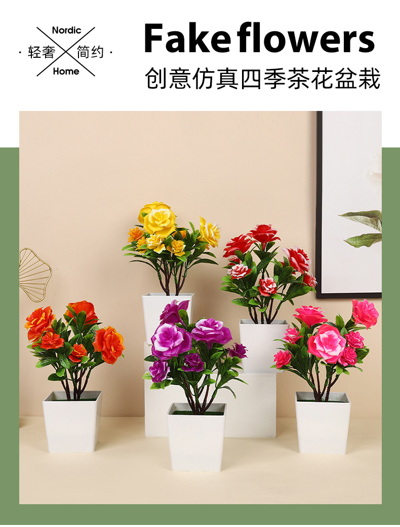 跨境热卖四季茶花仿真植物环保假植物绿植室内外装饰塑料盆栽批发