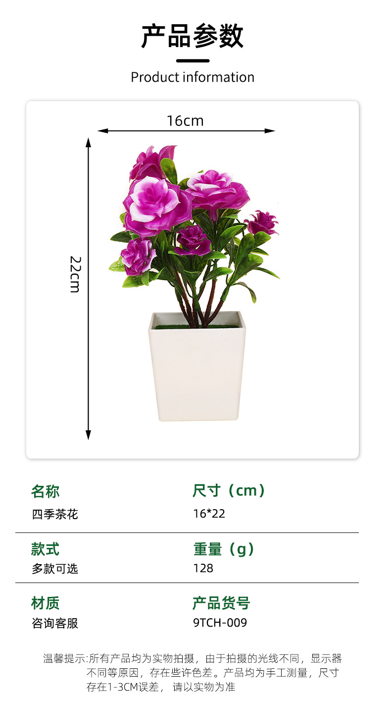 跨境热卖四季茶花仿真植物环保假植物绿植室内外装饰塑料盆栽批发 投诉