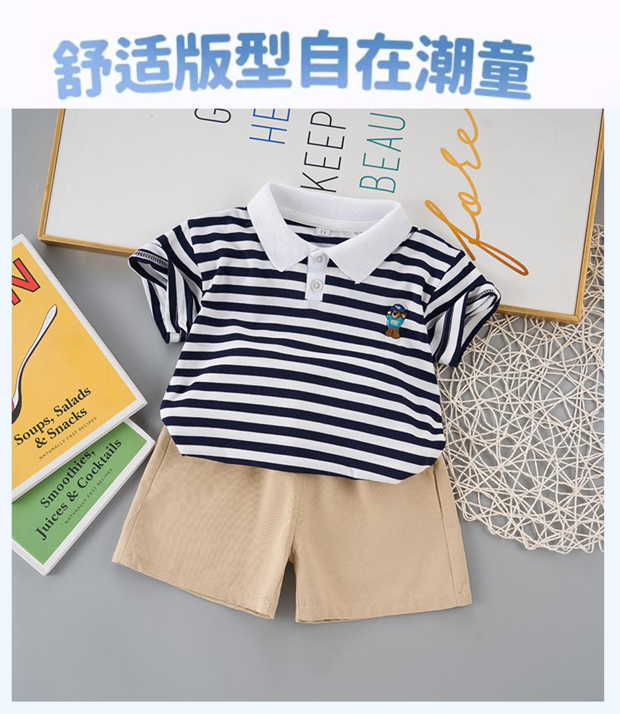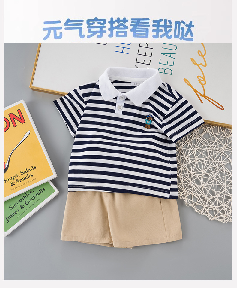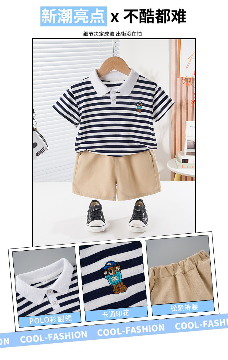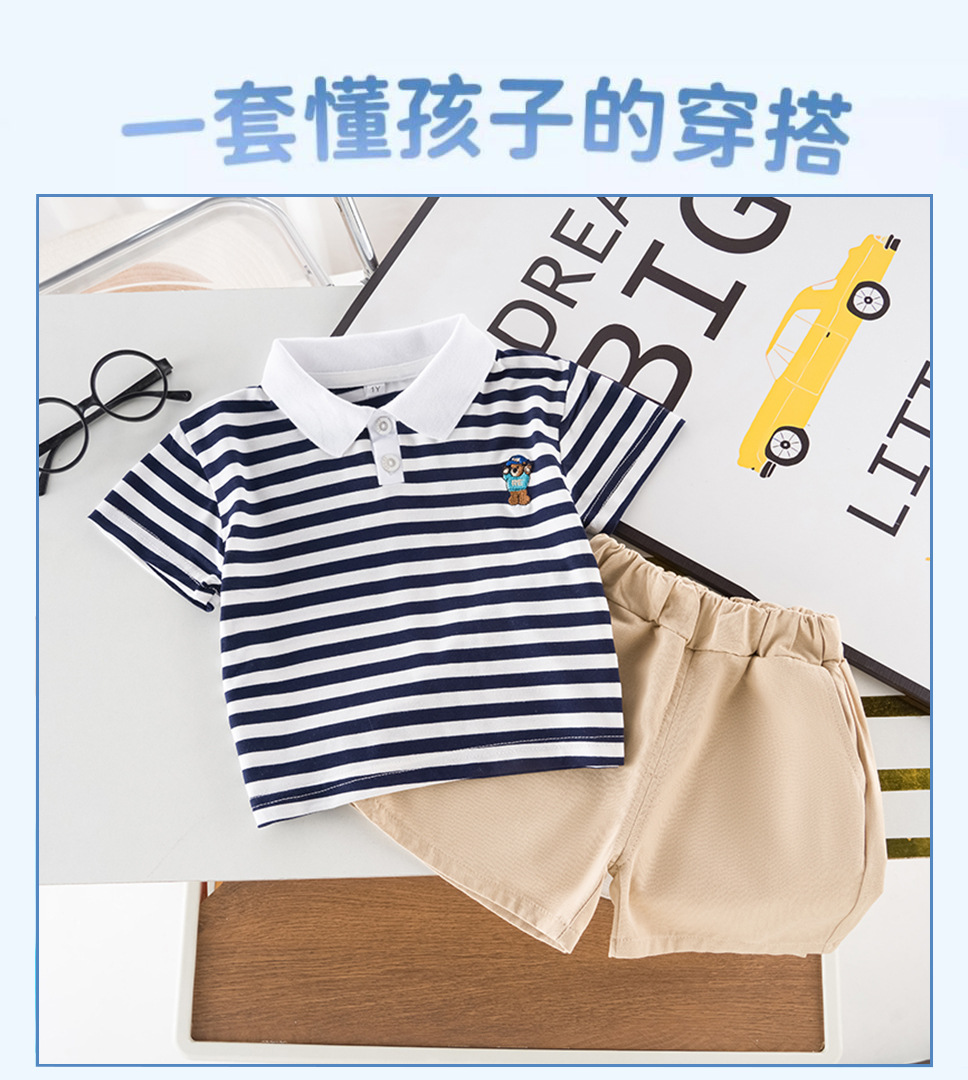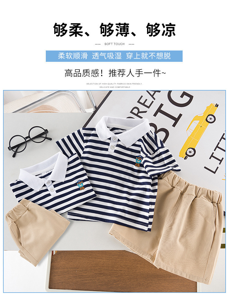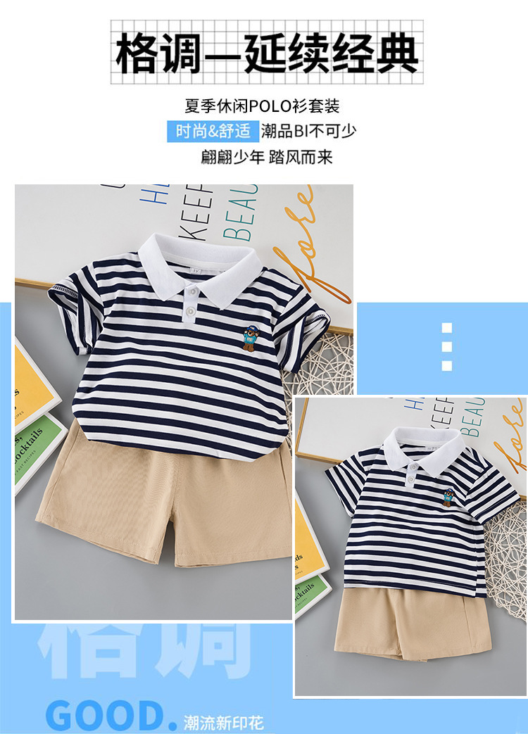男童短袖夏装套装新款夏季衣服条纹polo儿童男宝宝时尚两件套