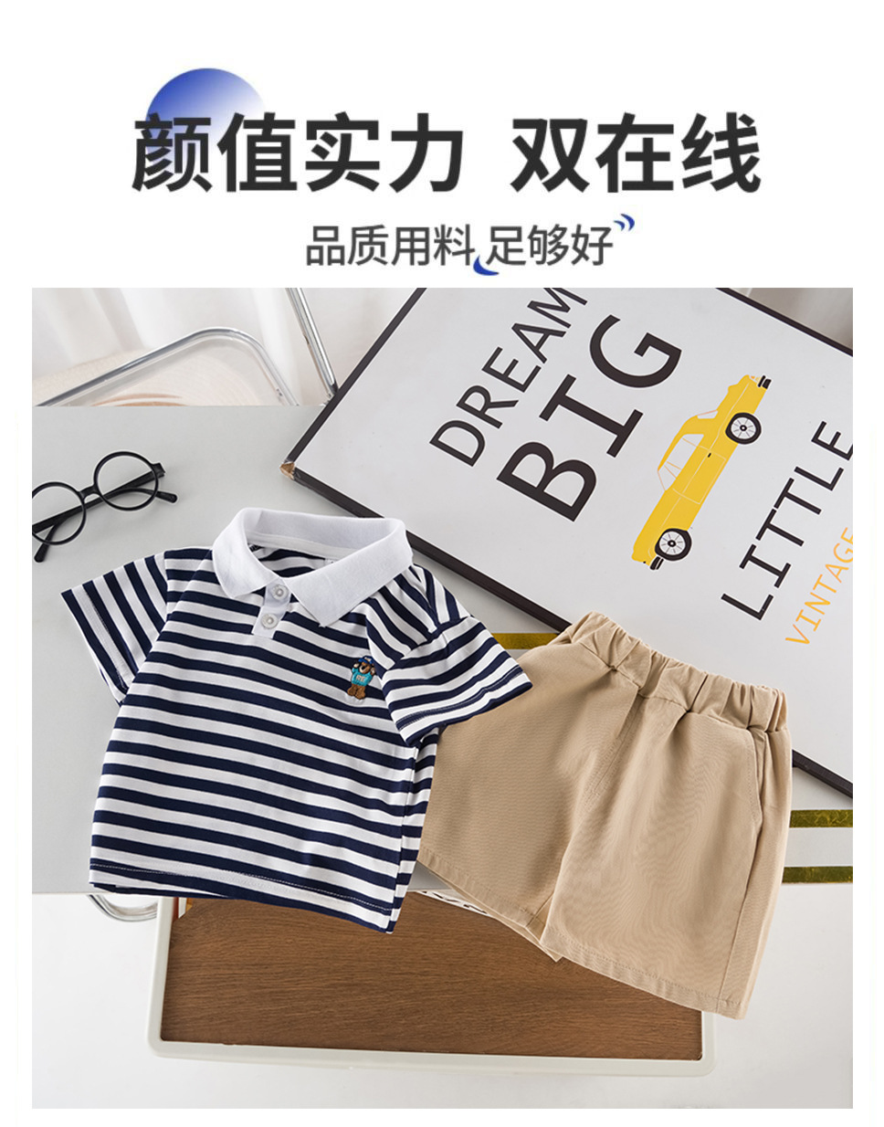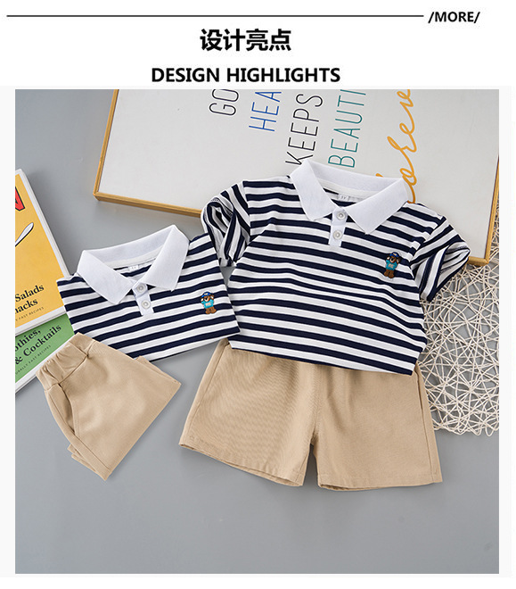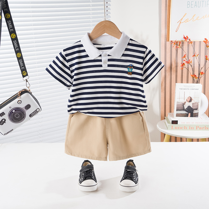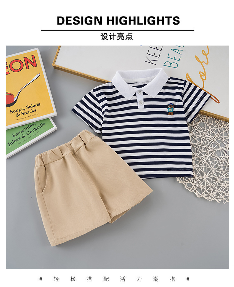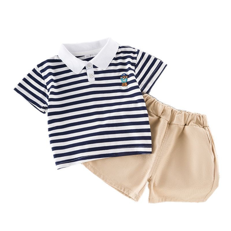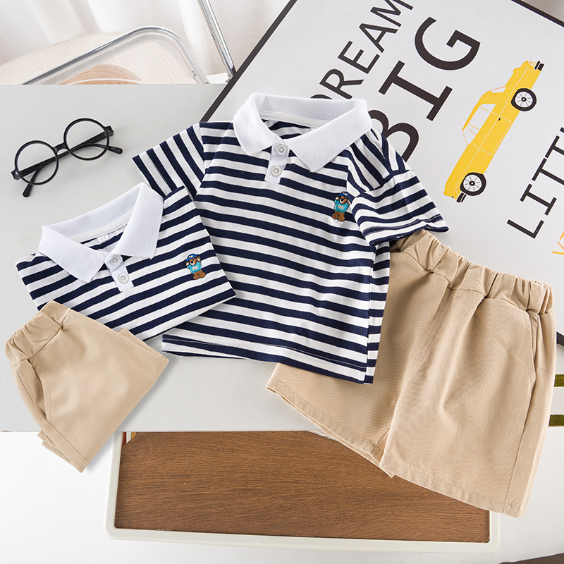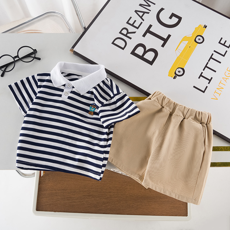 男童短袖夏装套装新款夏季衣服条纹polo儿童男宝宝时尚两件套
