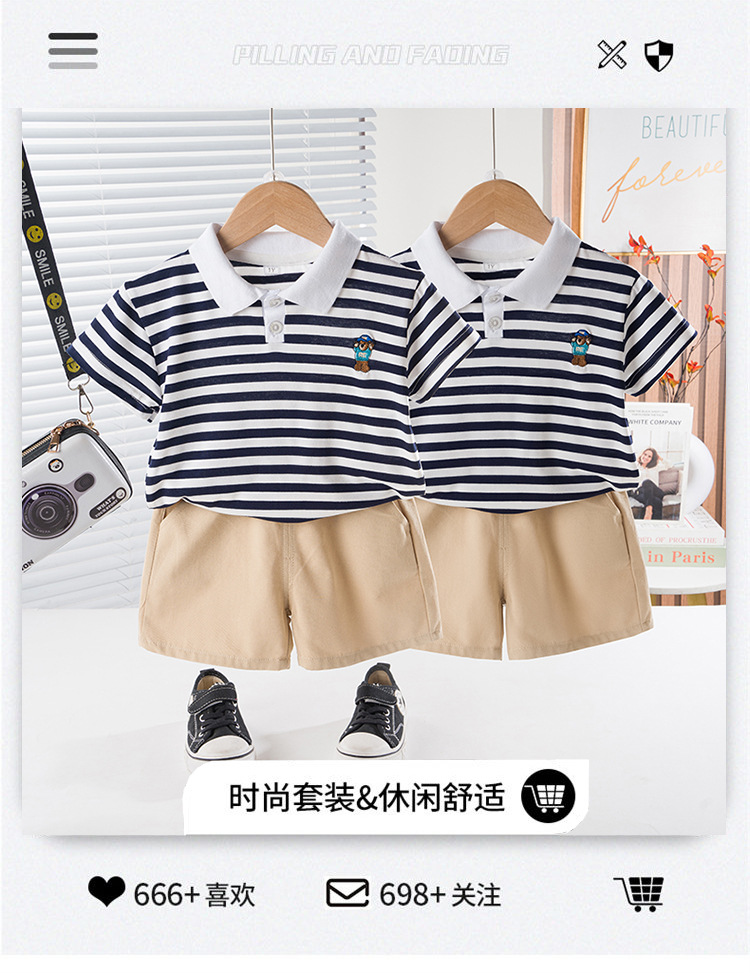 男童短袖夏装套装新款夏季衣服条纹polo儿童男宝宝时尚两件套 投诉