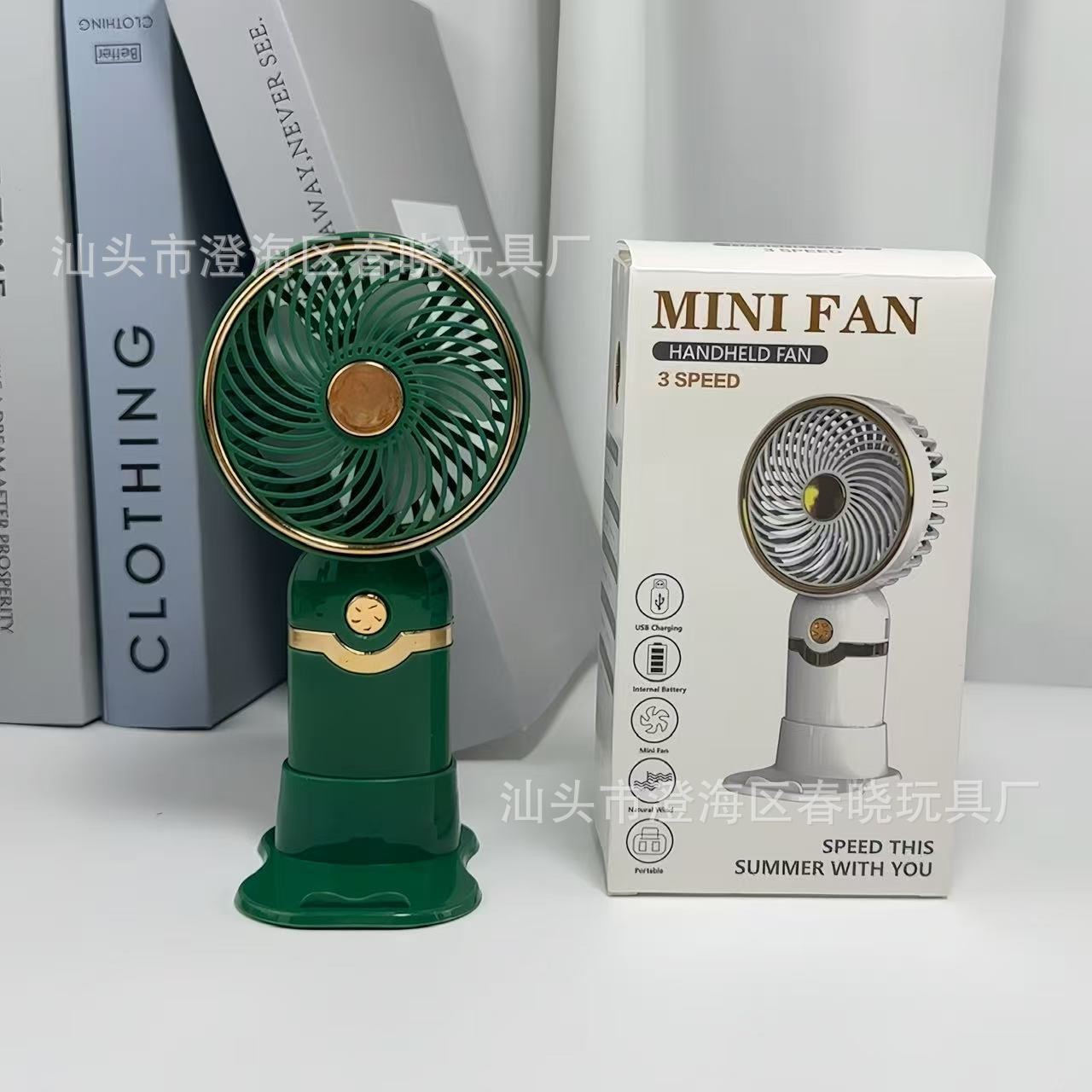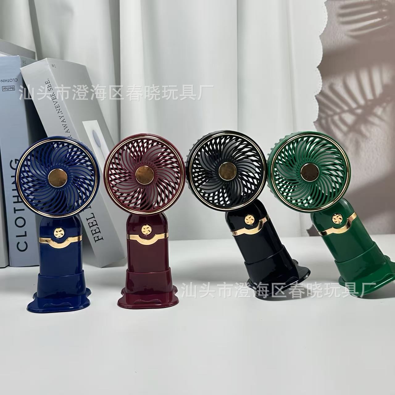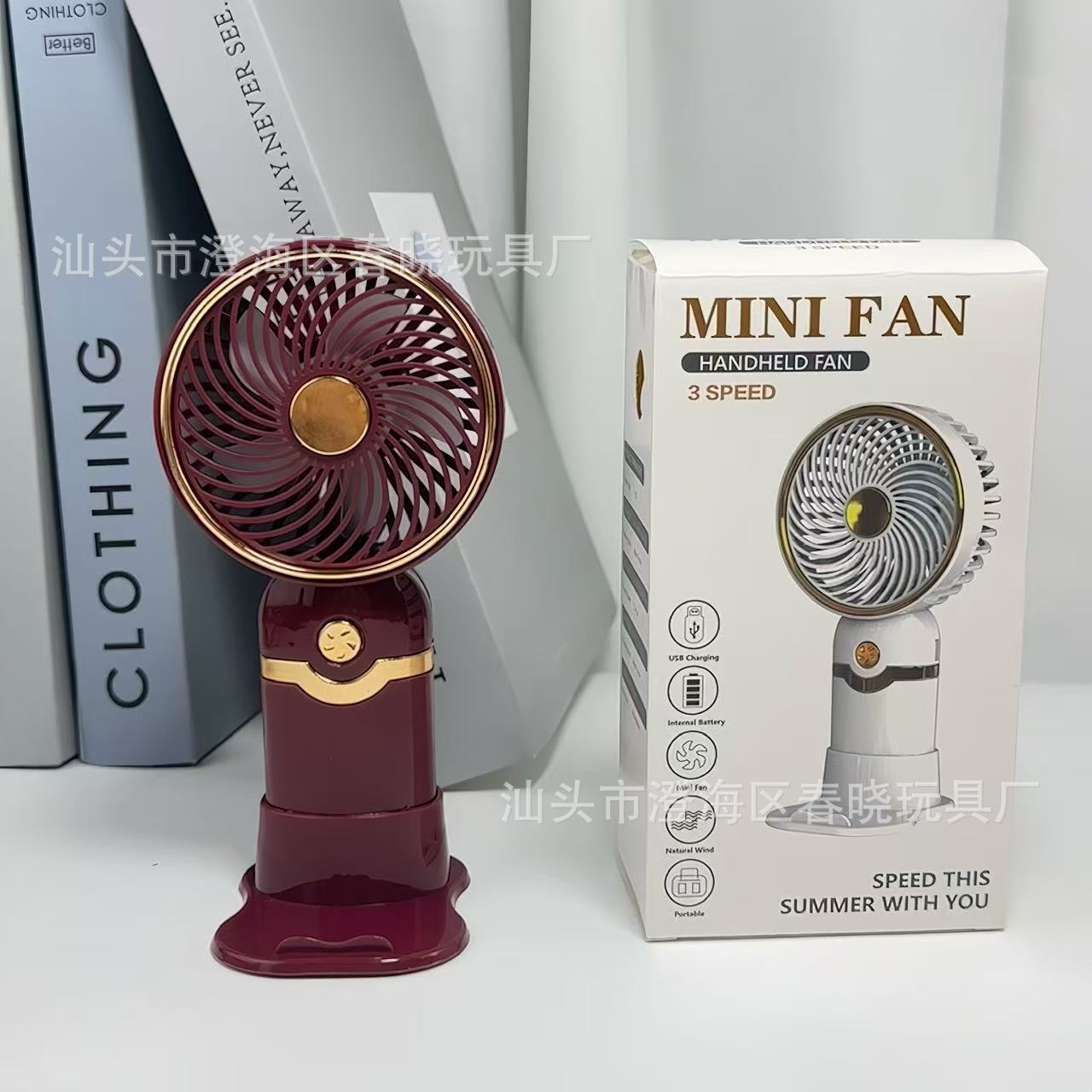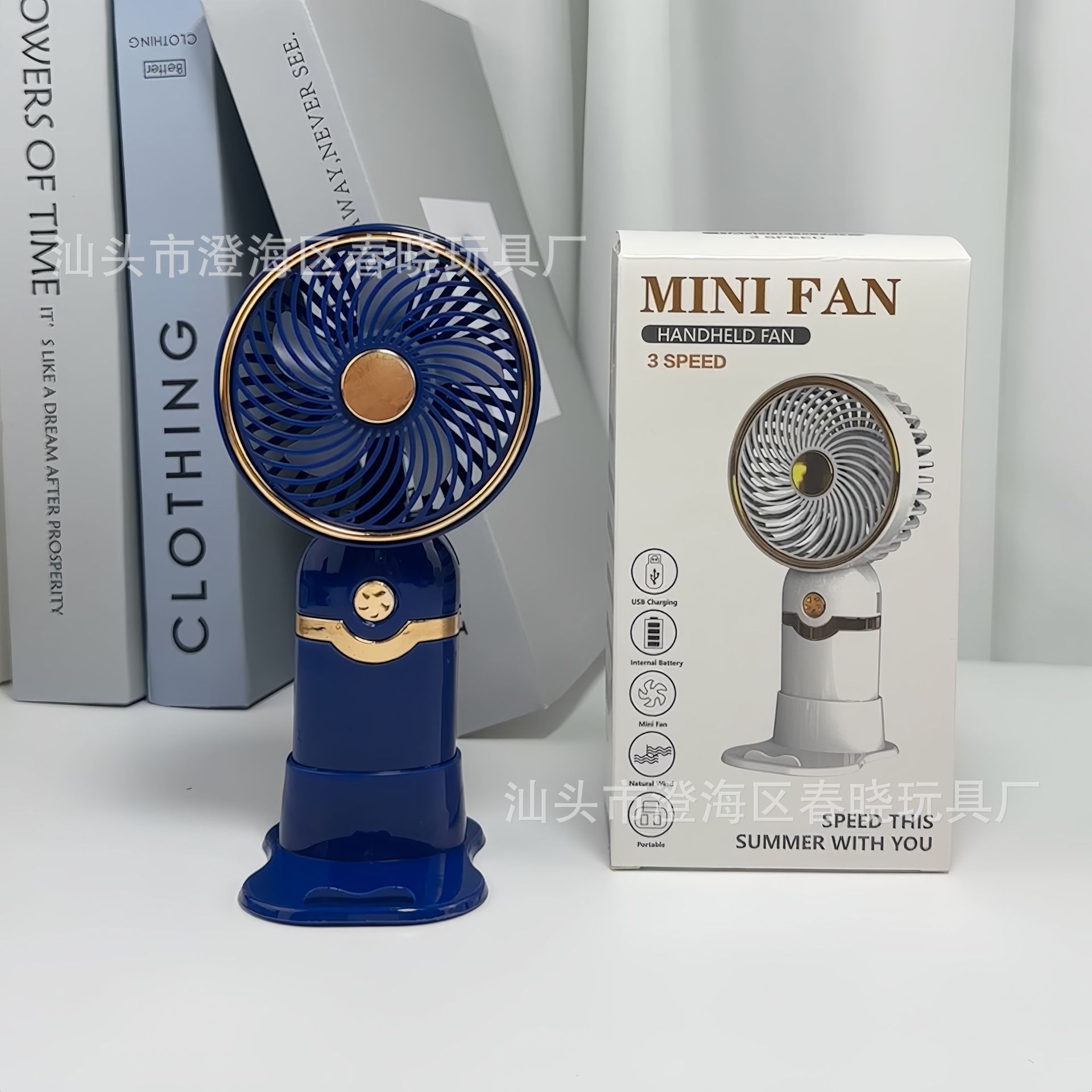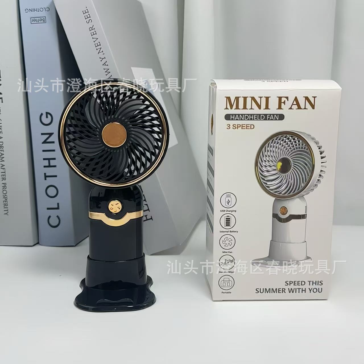 简约金属手持带底座小风扇USB充电夏季户外旅游口袋桌面电风扇 English | 投诉