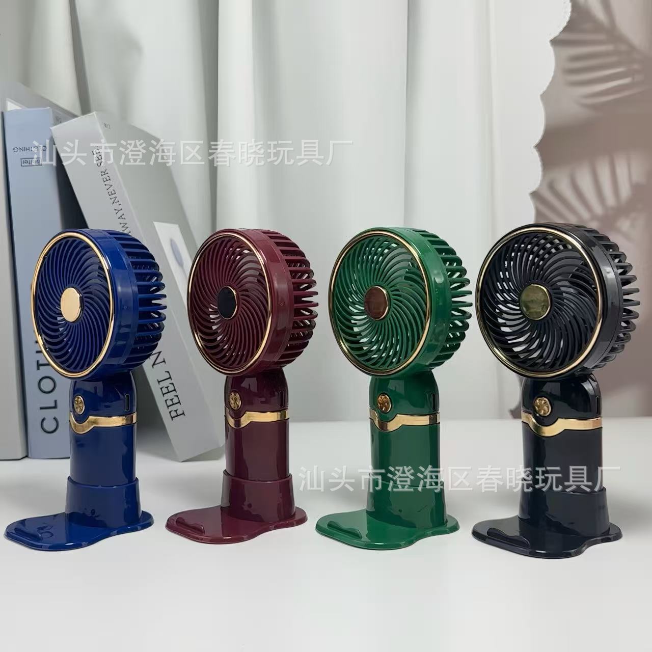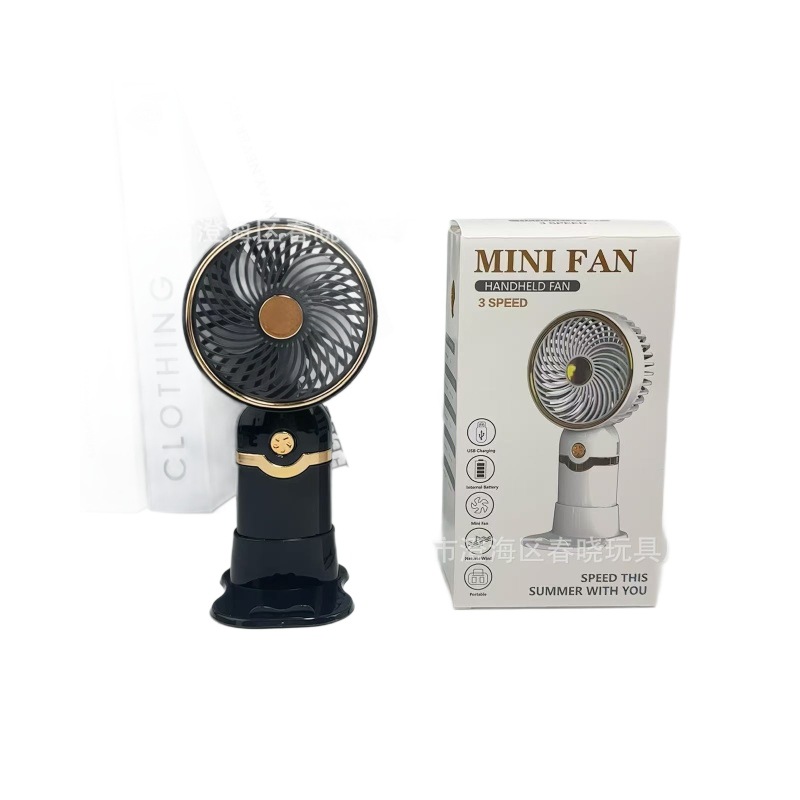 简约金属手持带底座小风扇USB充电夏季户外旅游口袋桌面电风扇