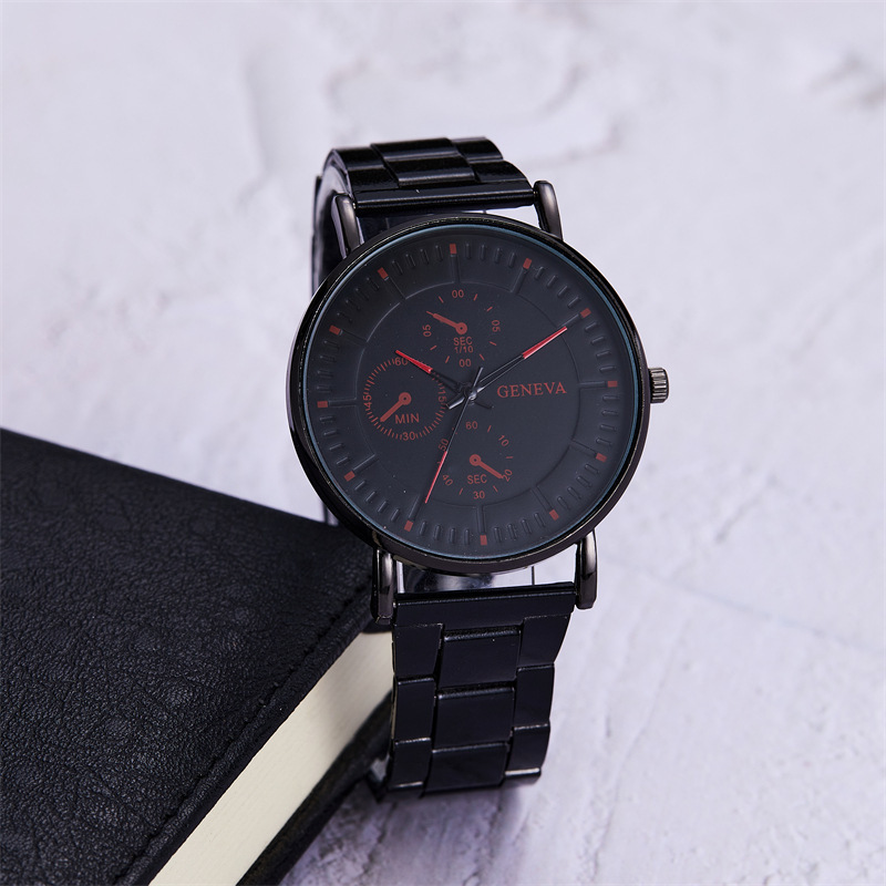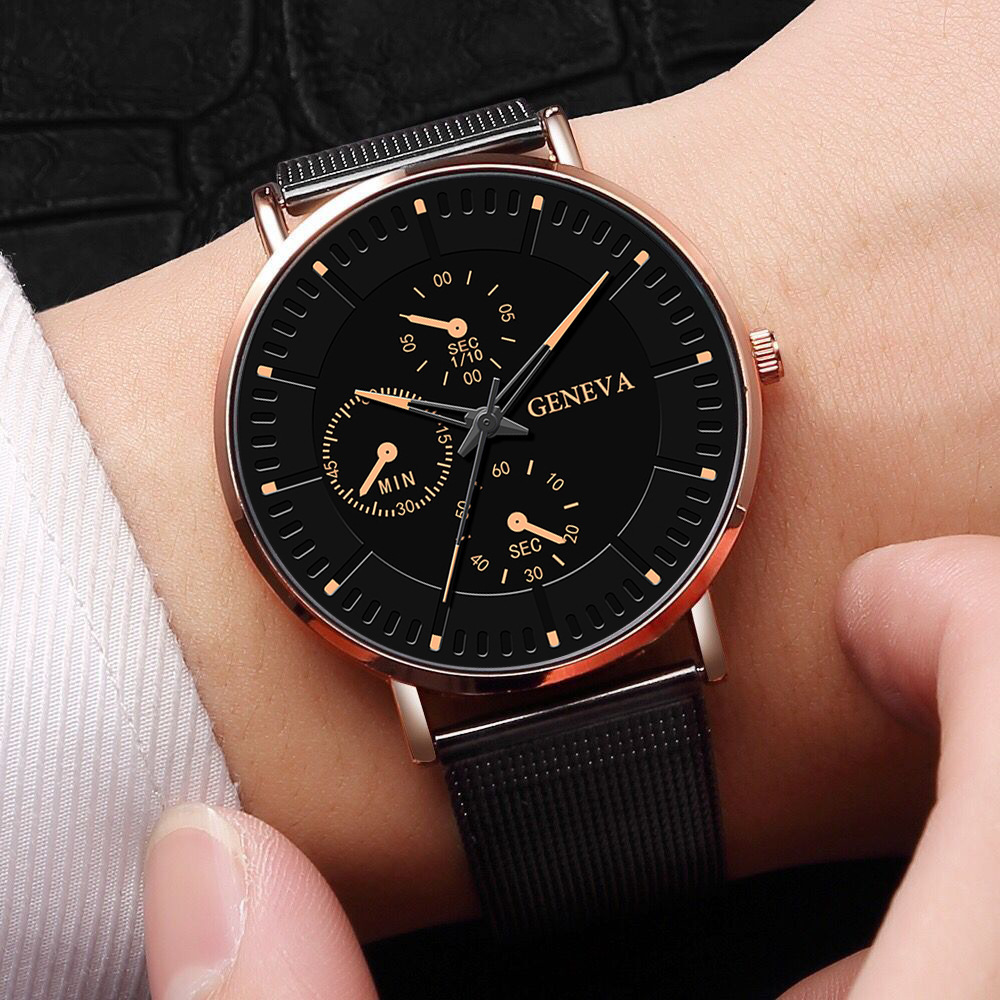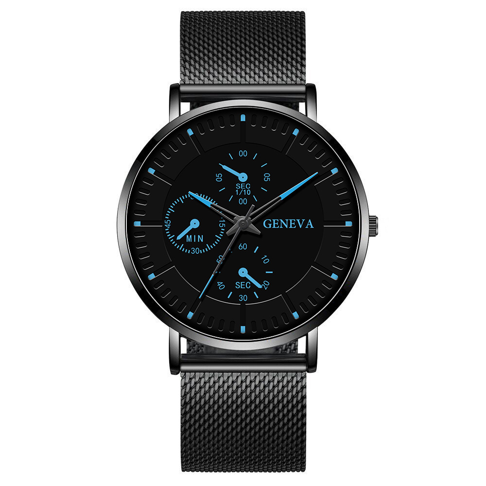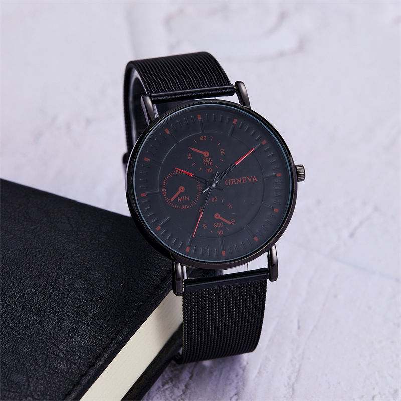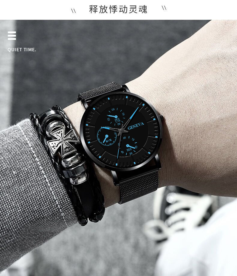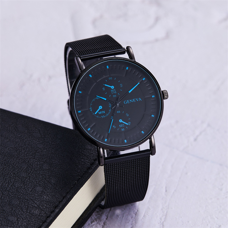 韩版手表男款网带简约刻度三眼金属男士装饰石英腕表商务男士腕表 English | 投诉