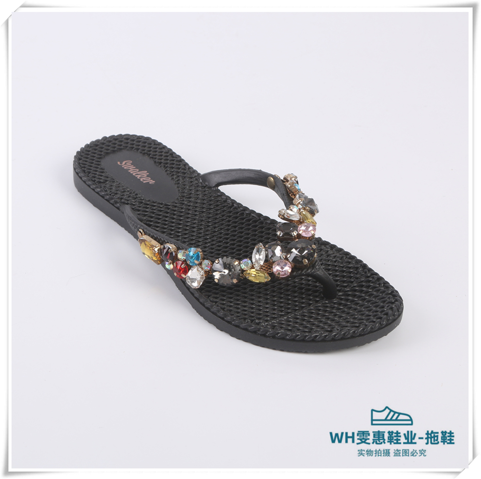 产品名称:炫彩水钻黑色款夹脚人字拖女 外穿软底防滑拖鞋 时尚居家沙滩凉拖