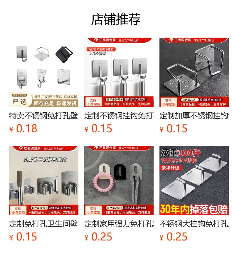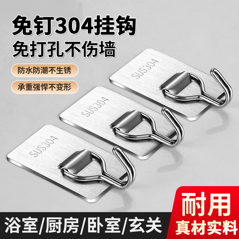 强力挂钩免打孔不锈钢粘胶门后挂衣钩子客厅厨房宿舍粘钩收纳挂钩