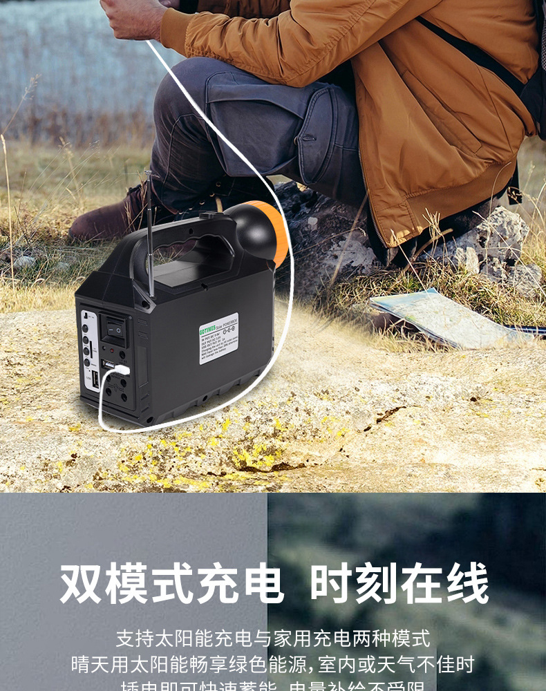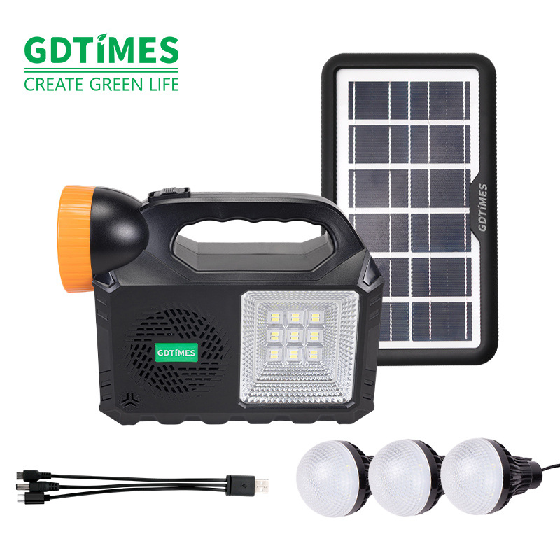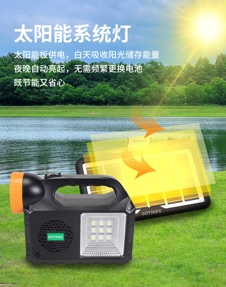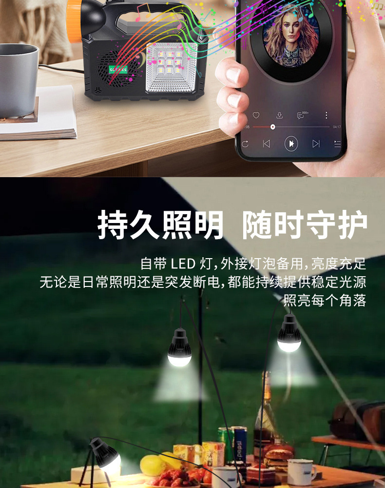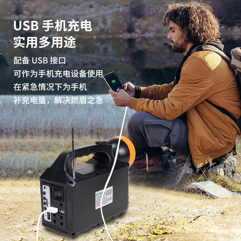 GD户外太阳能照明小系统露营庭院带灯泡可充手机 solar light音响