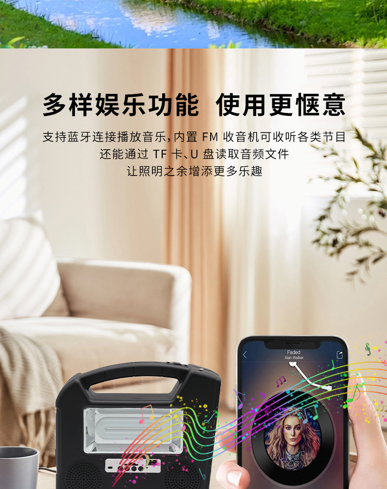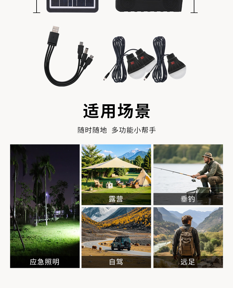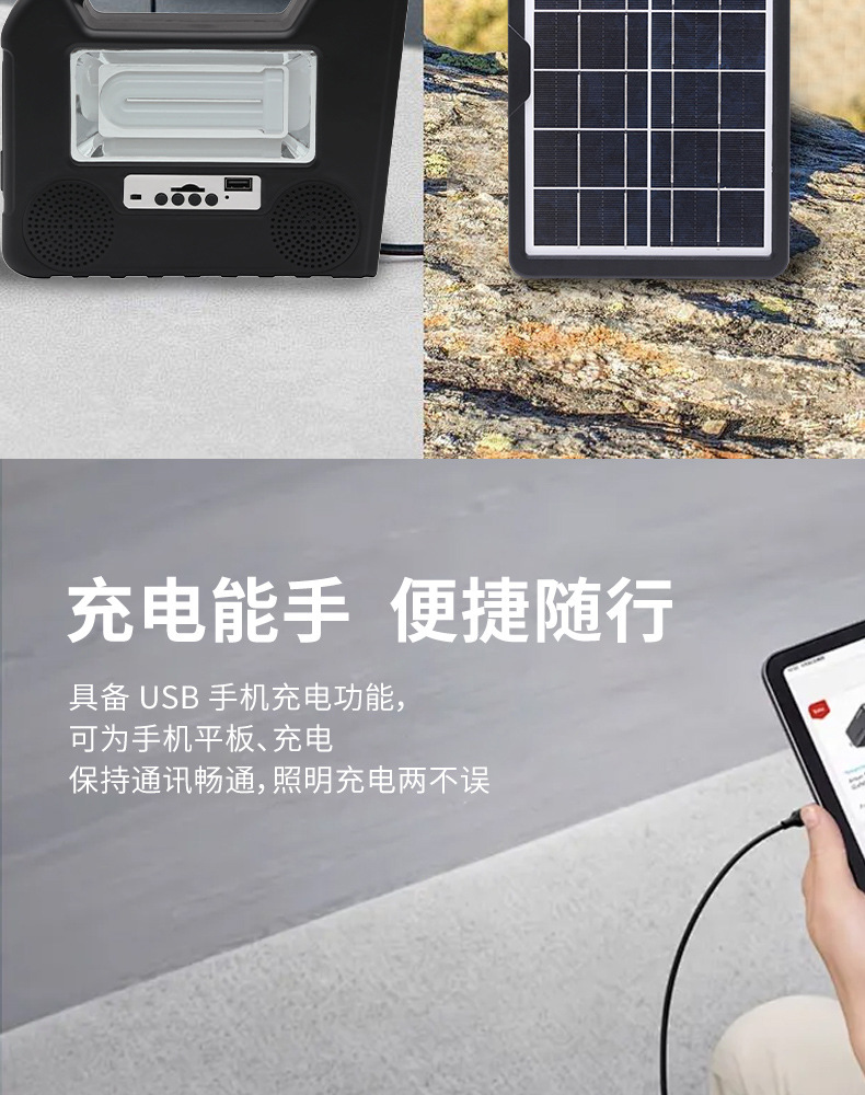 多功能应急手提灯户外便携露营灯太阳能USB充电工作灯帐篷探照灯 English | 投诉