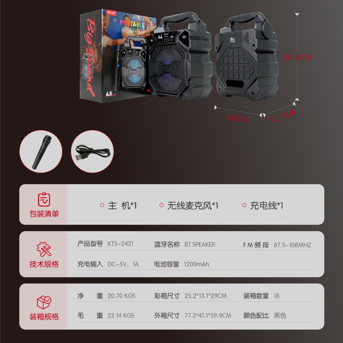 1.蓝牙:Vesion 5.0/ BT SPEAKER.