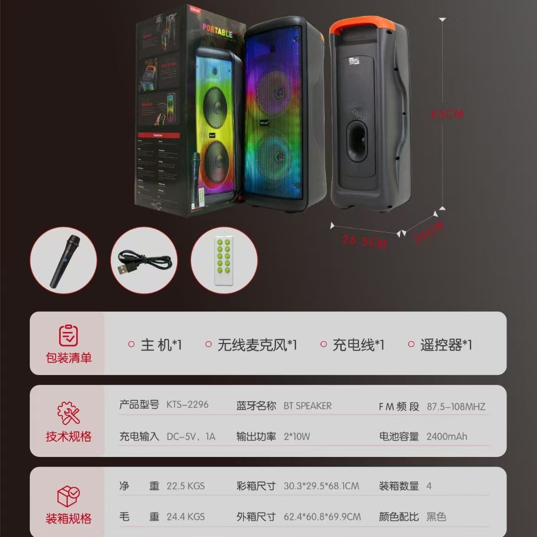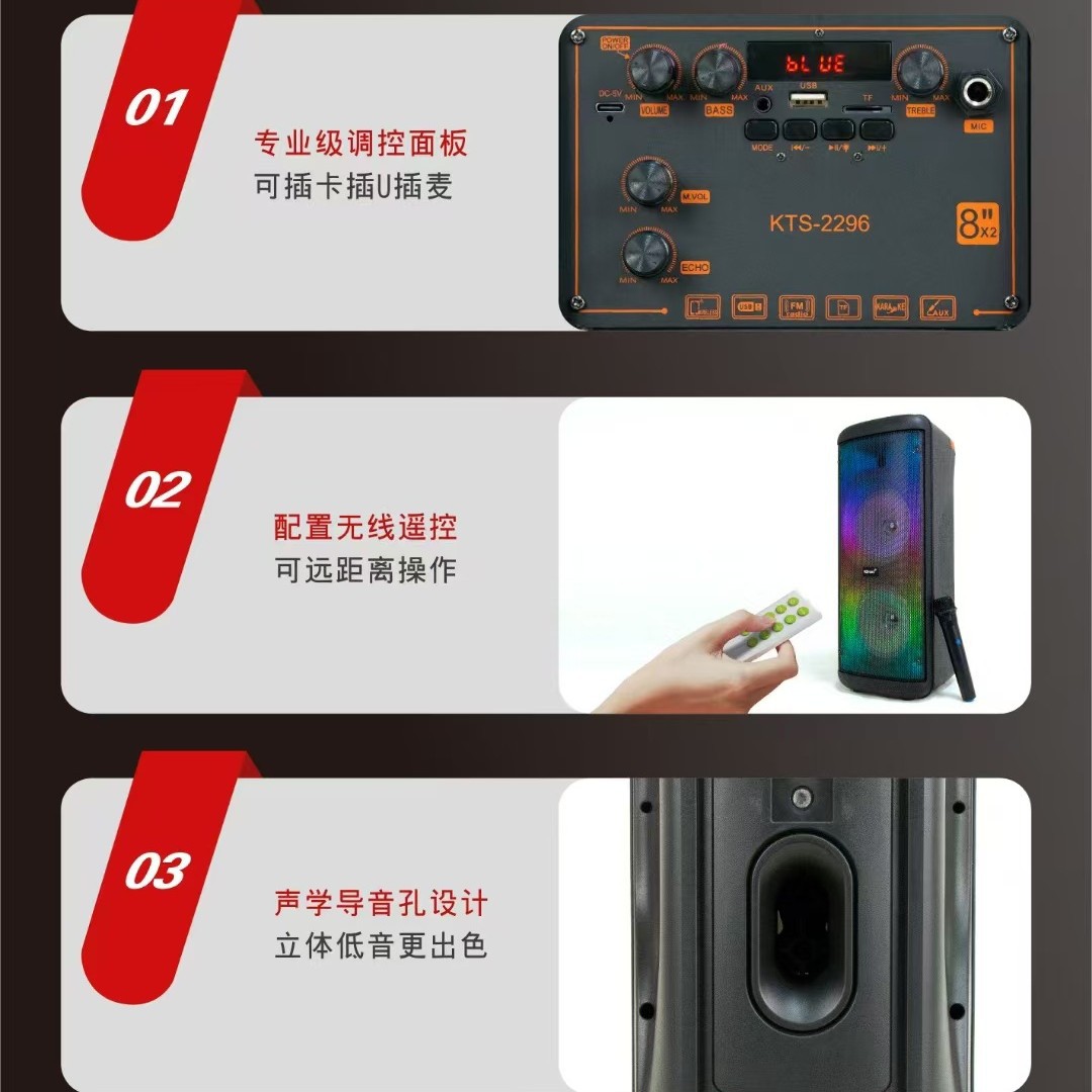 2.U盘、TF、FM、LINEIN、TWS、RGB灯