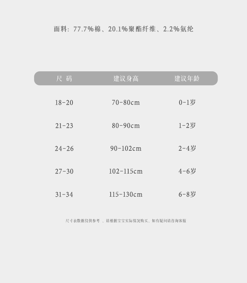 | 31-34身高120-130cm适合6-8岁 | ¥0 | 19981条可售 |