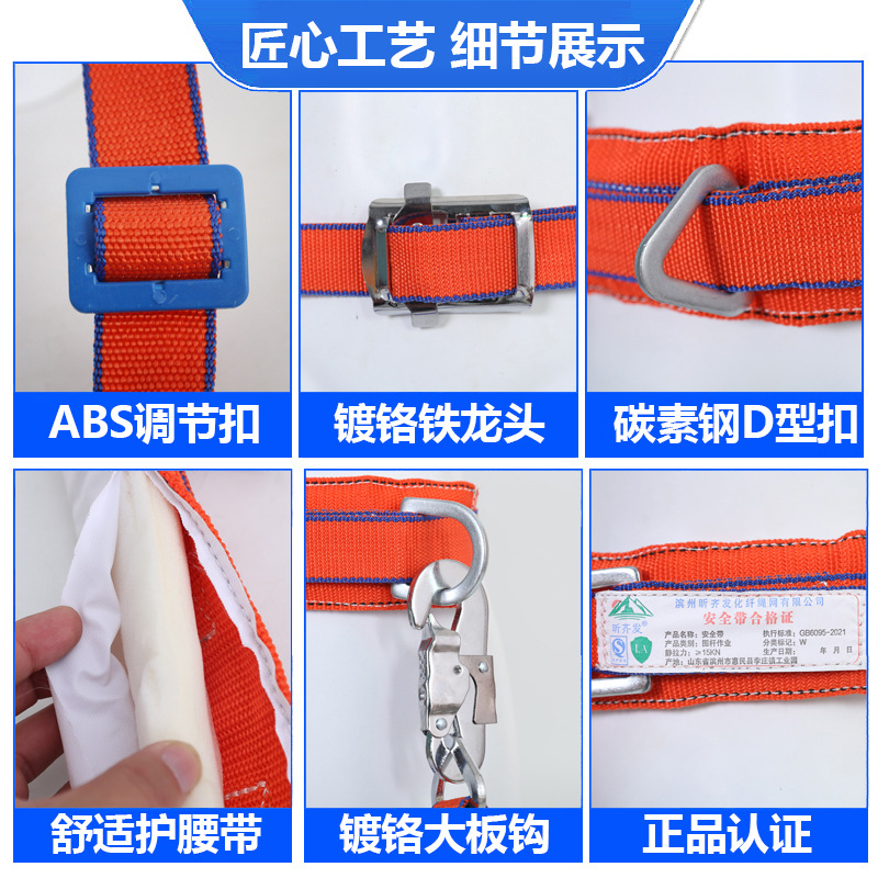 安全带材质: 高强丙纶 品牌: 昕齐发 安全绳材质: 涤纶 绳长: 可定制 颜色: 橘红色 断破拉力: 咨询客服 标准编号: 国标GB6095-2021 单品货号: 电工安全带 安全绳类型: 电工安全带